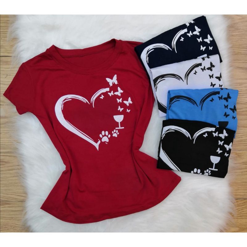 kit 3 blusinha básica baby look camiseta viscorycla estampas variados