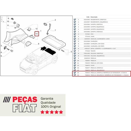 Par Suporte Trava Tampão Porta Malas Fiat Punto Original Fiat Mopar 2008 a 2017