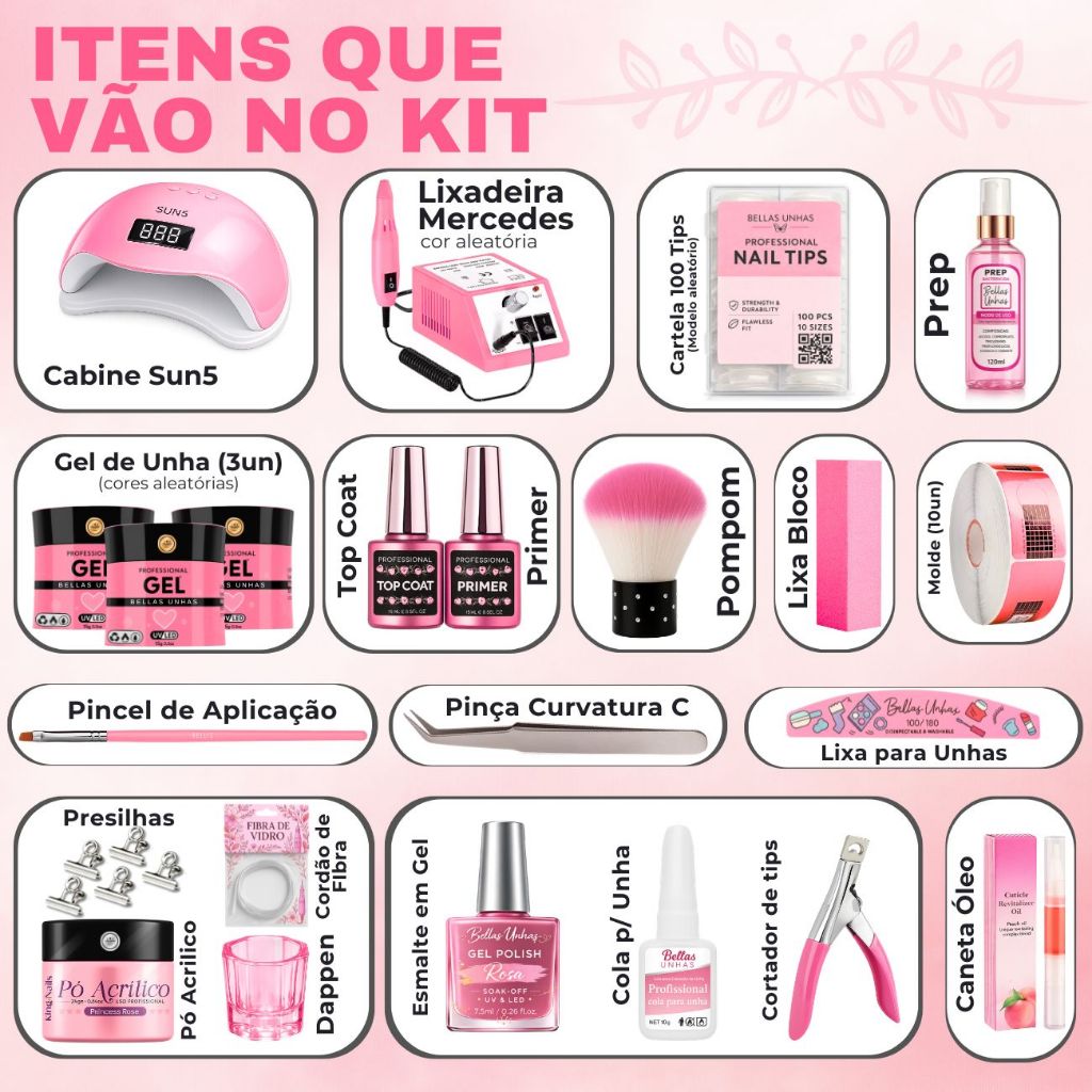 Kit De Unha Gel Completo Fibra Kit Alongamento Gel - Envio Imediato