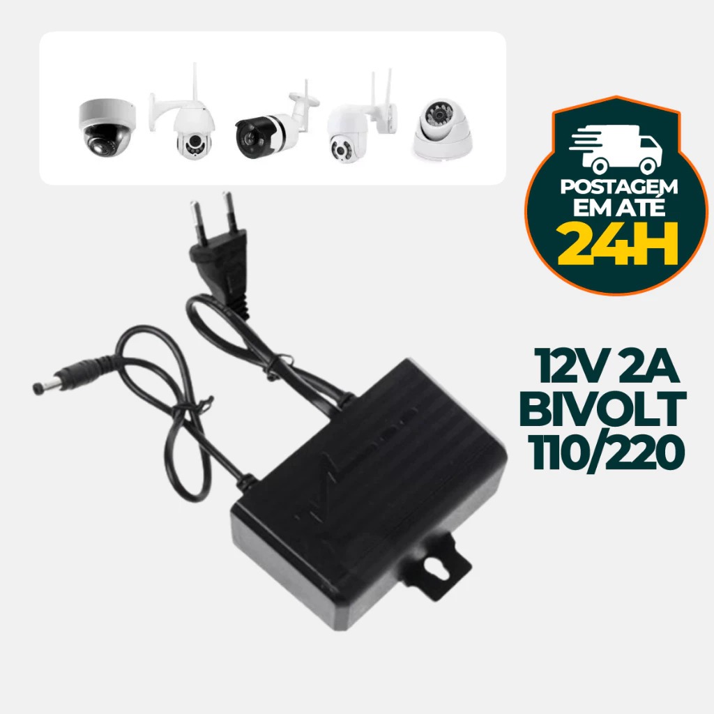 Fonte para Câmera de segurança Wifi Externa Adaptador 12V 2A Bivolt 110/220 a prova de água