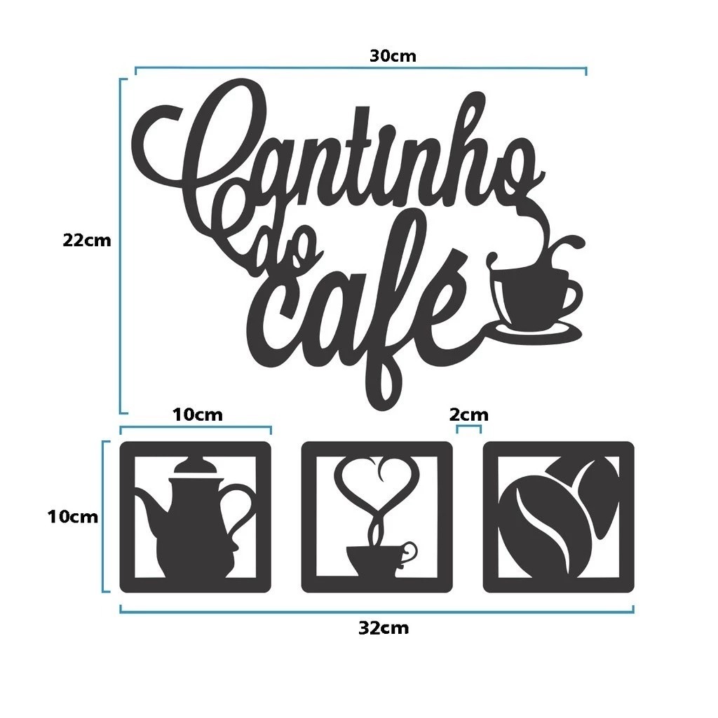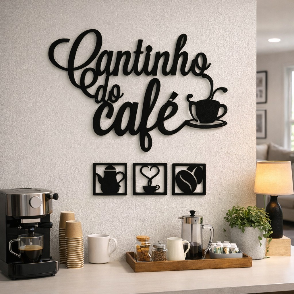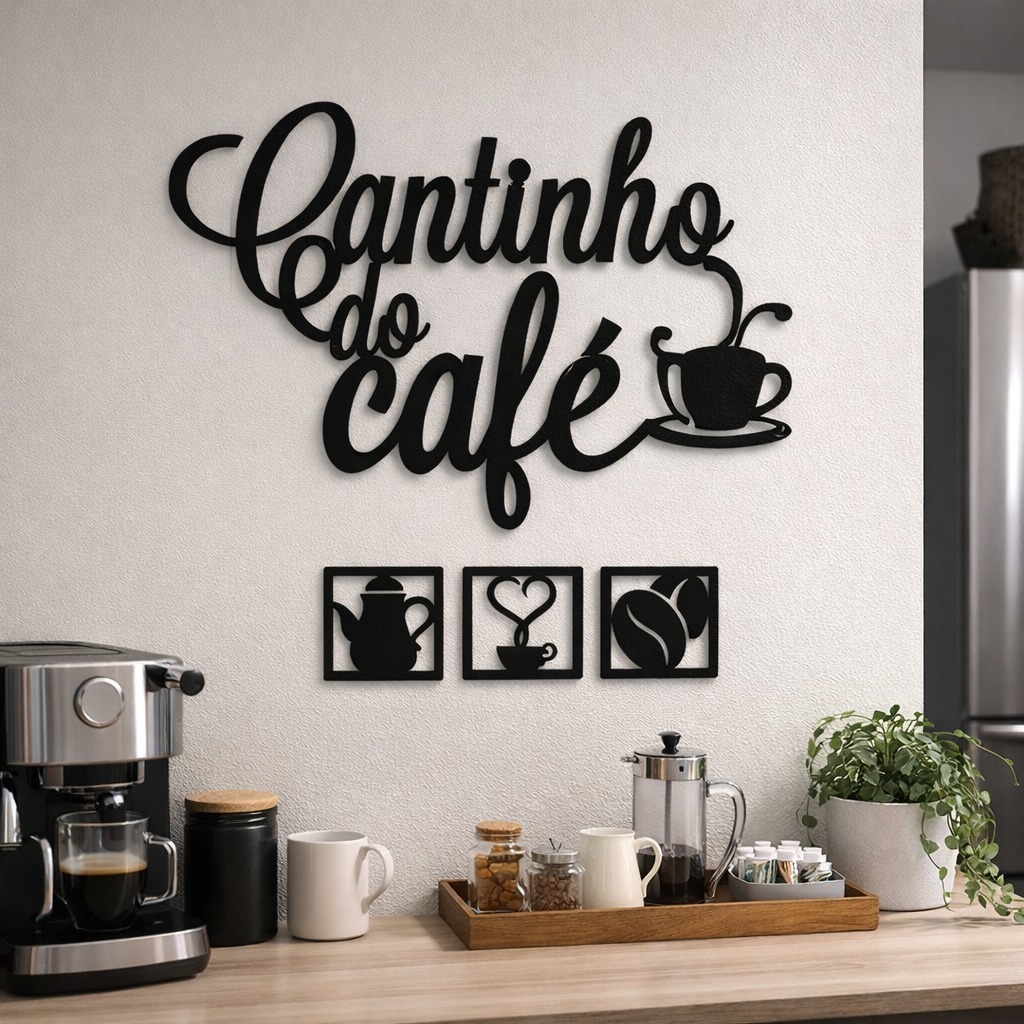 Kit Decoração 4 Placas em MDF Apliques Cantinho do Café em MDF 3mm