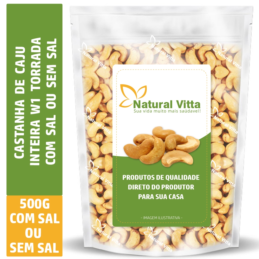 Castanha De Caju w1 Inteira 1kg - Torrada Com Sal Ou Sem Sal Natural Vitta