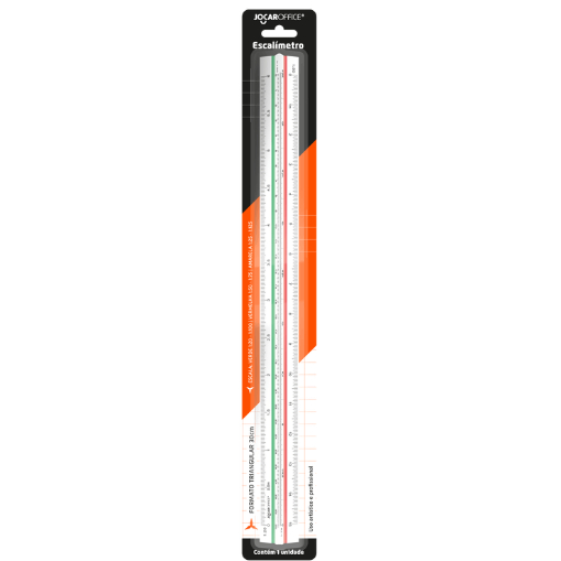 ESCALÍMETRO DE PLÁSTICO 30 CM C/ 6 ESCALAS - BLISTER C/ 1 UND JOCAR OFFICE -Leonora