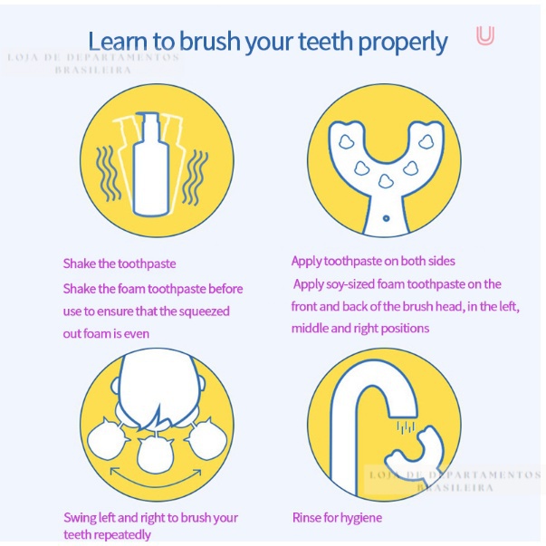 Escova de dentes em forma de U de 360 graus para crianças, bebê infantil 2-6-12 anos, Escova macia