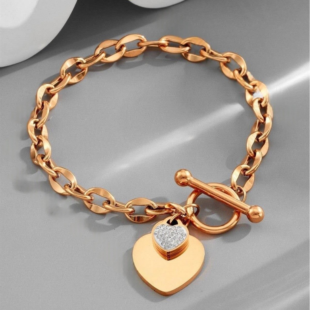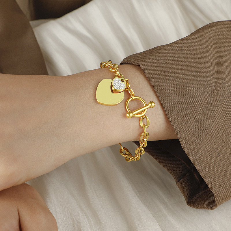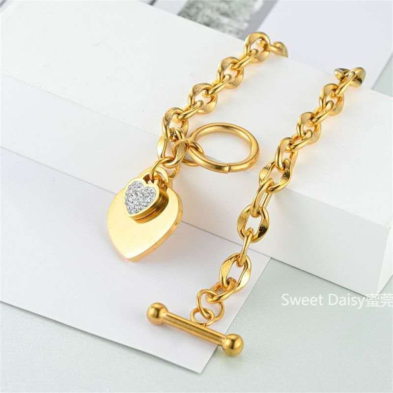 Gl 316l aço inoxidável coração cristal dupla camada amor senhora joyeria fina para mujer pulseiras de casal de longa