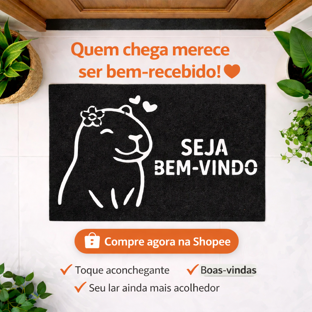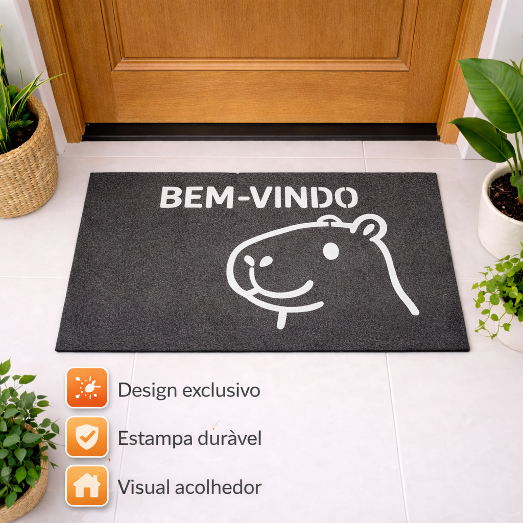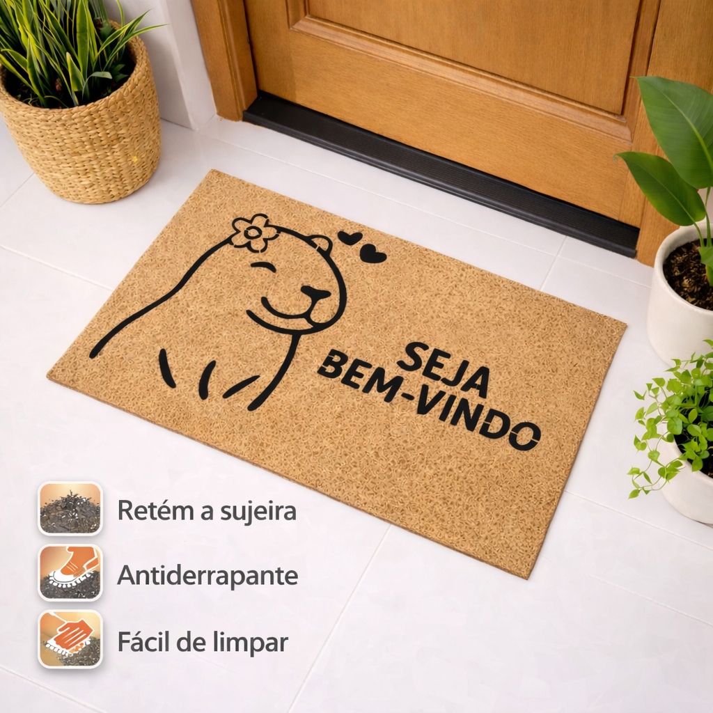 Tapete Capacho Capivara Antiderrapante Vinil 40x60cm Decoração Porta Entrada