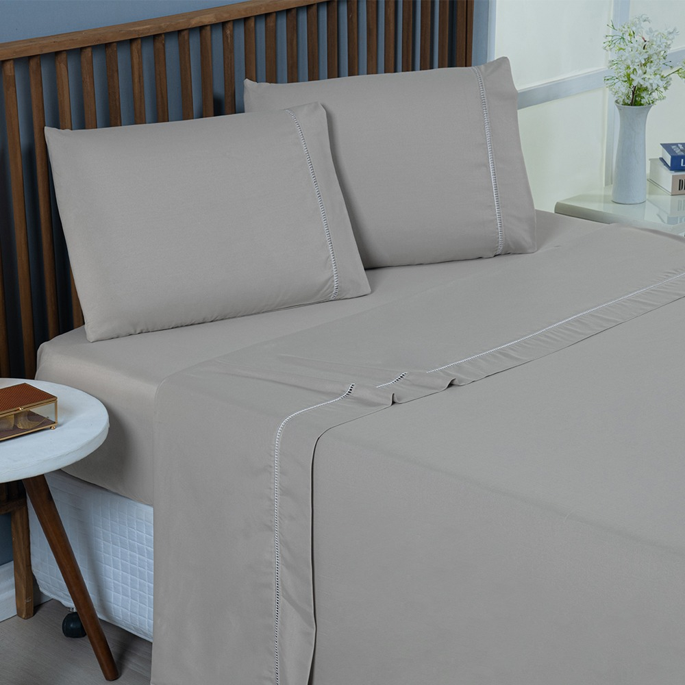 Jogo De Lençol Cama King 400 Fios Ponto Palito 4 Peças
