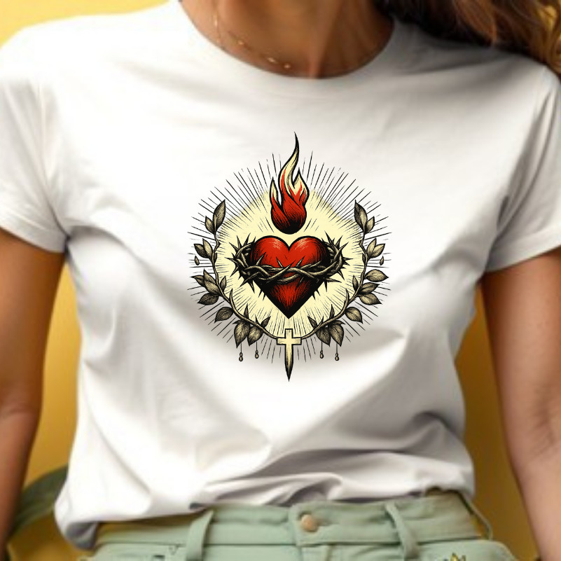 Blusa Camiseta Feminina Sagrado Coração de Jesus Moda Católica Cristã Religiosa