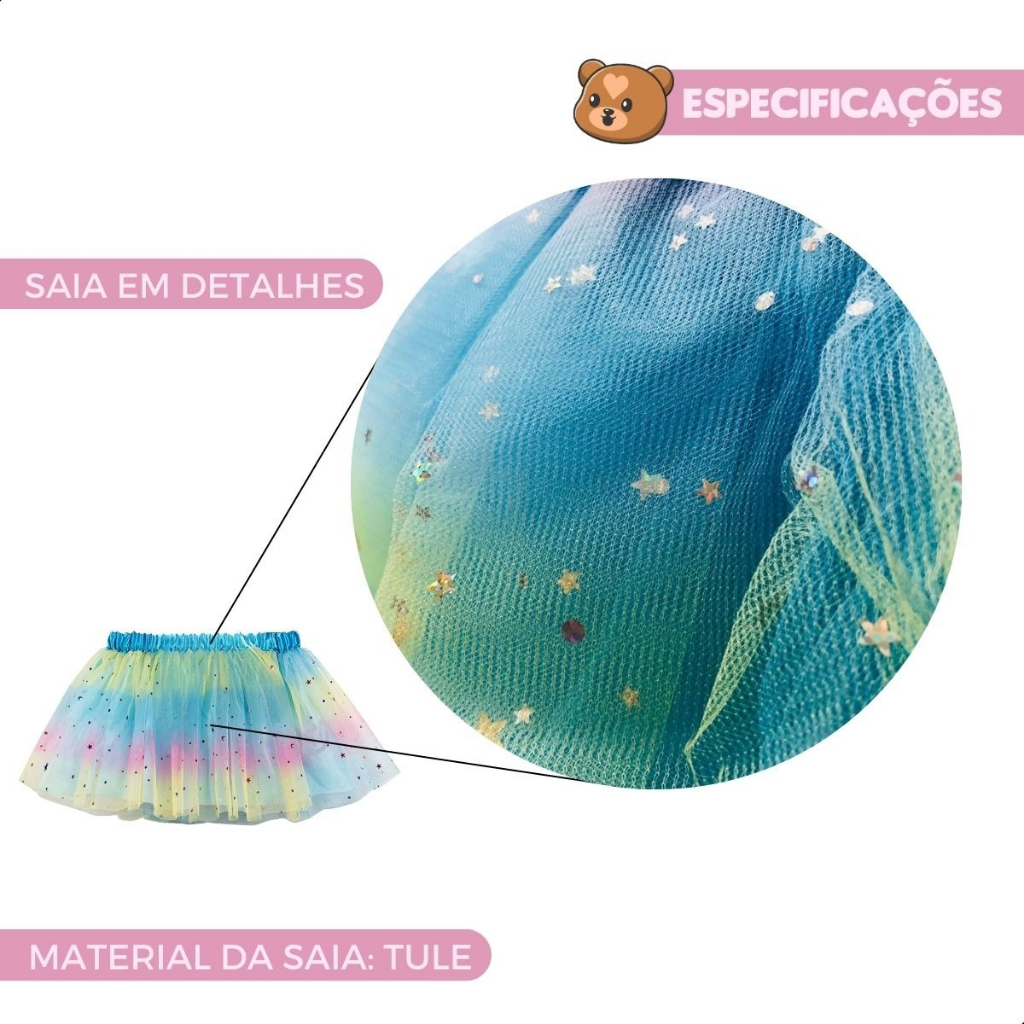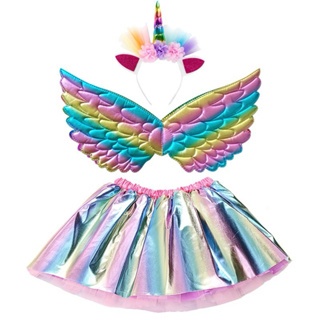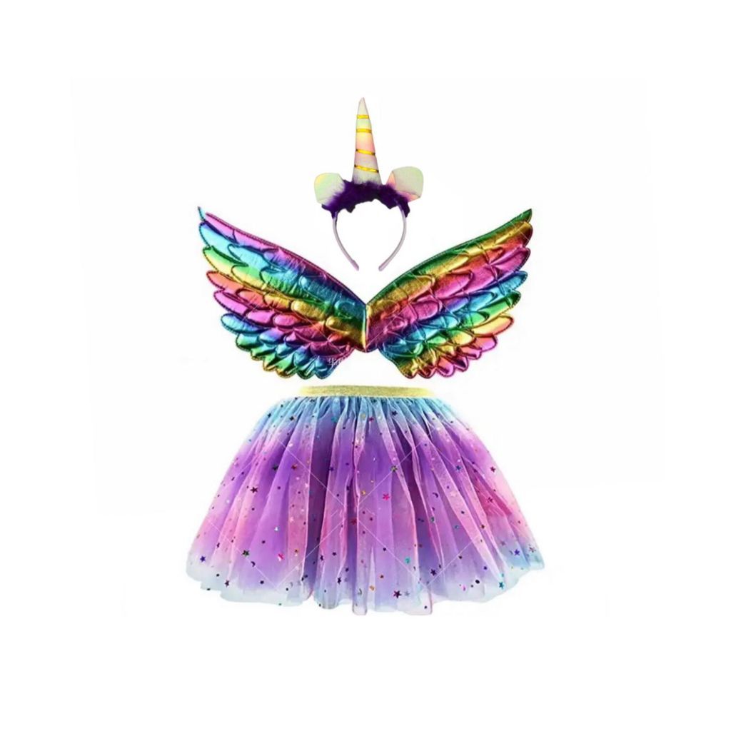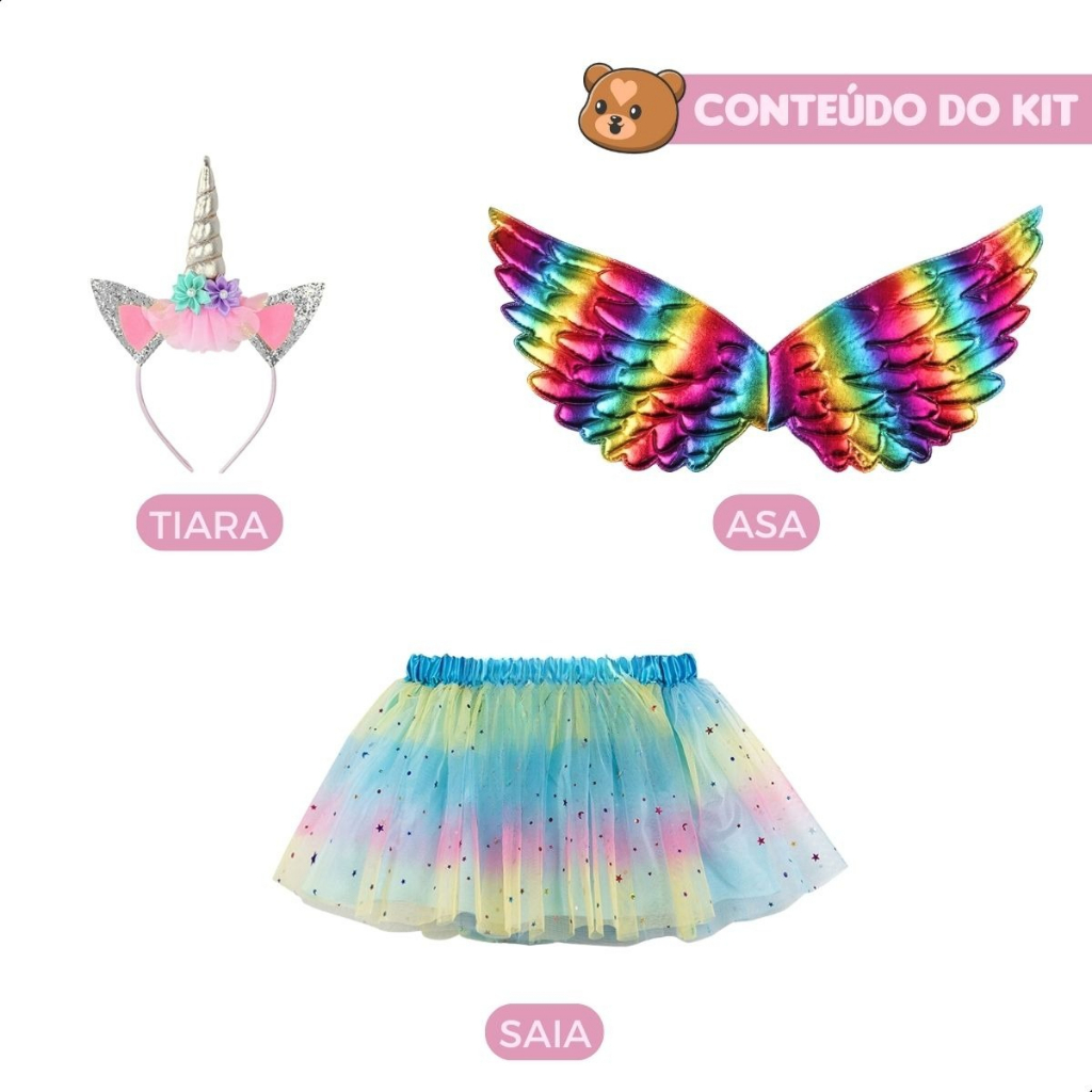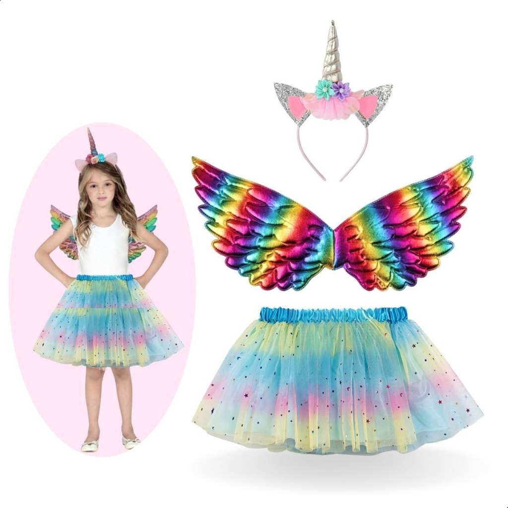 Fantasia Infantil feminina luxo Unicórnio Asa+Saia+Tiara 4 a 12 anos