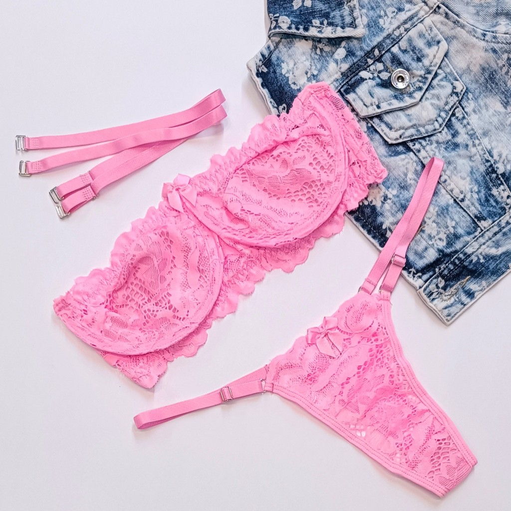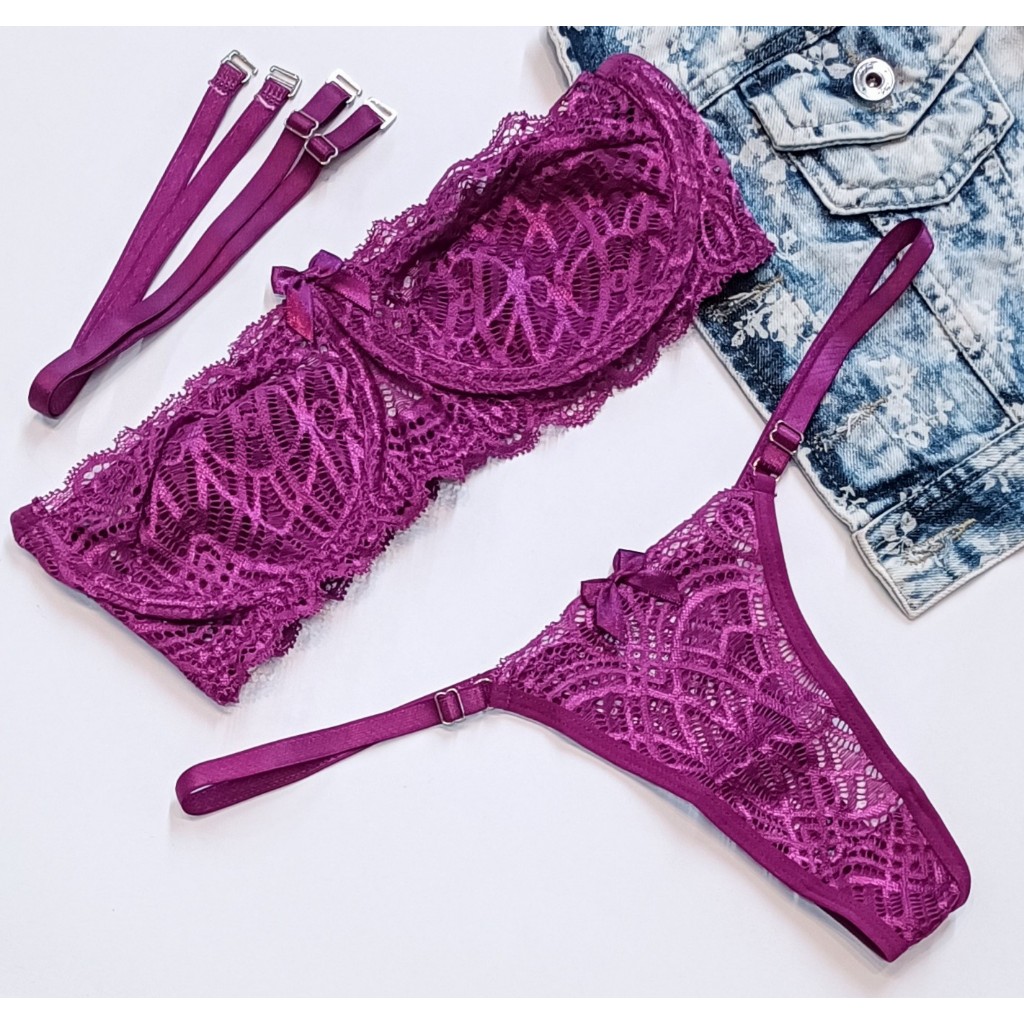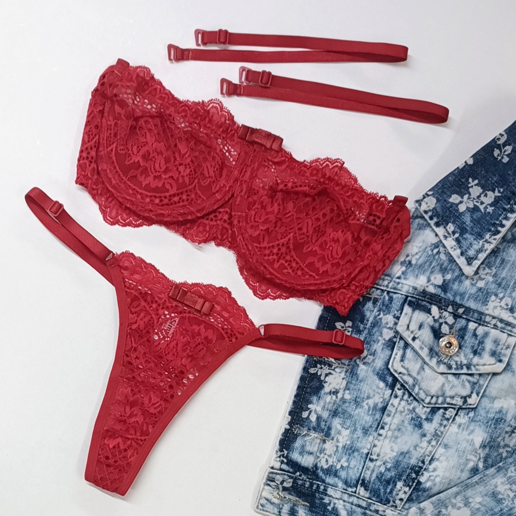 Conjunto Nara alça removível Ref.618 Sem bojo em renda com aro com forro tomara que caia