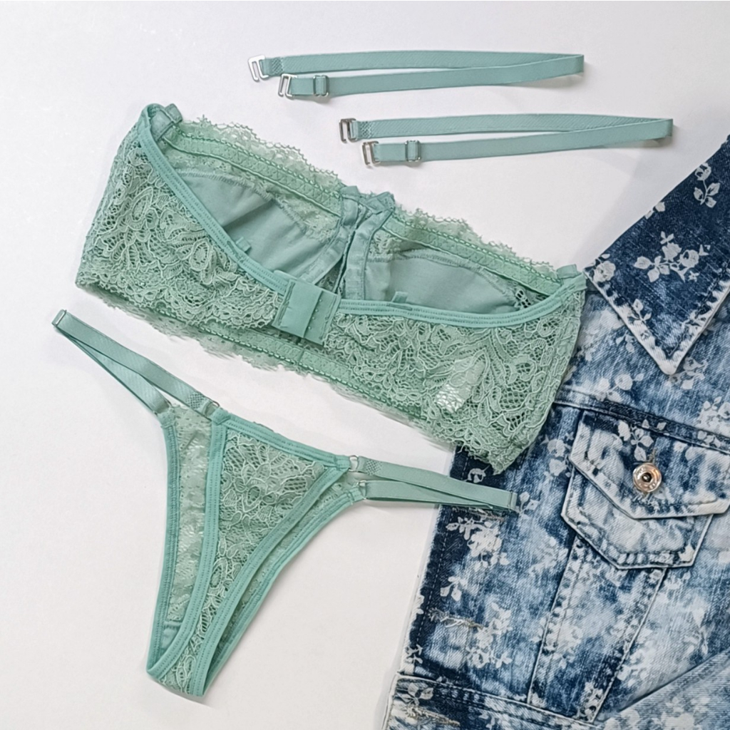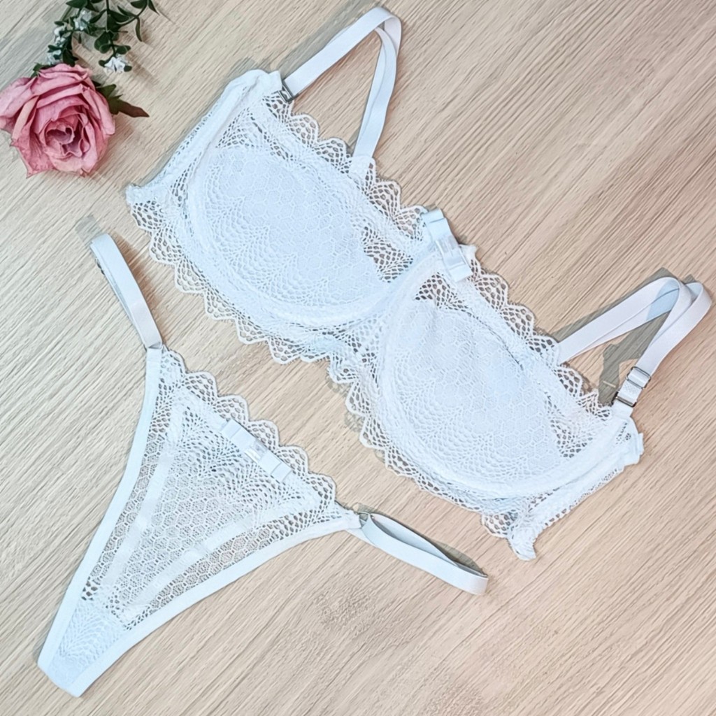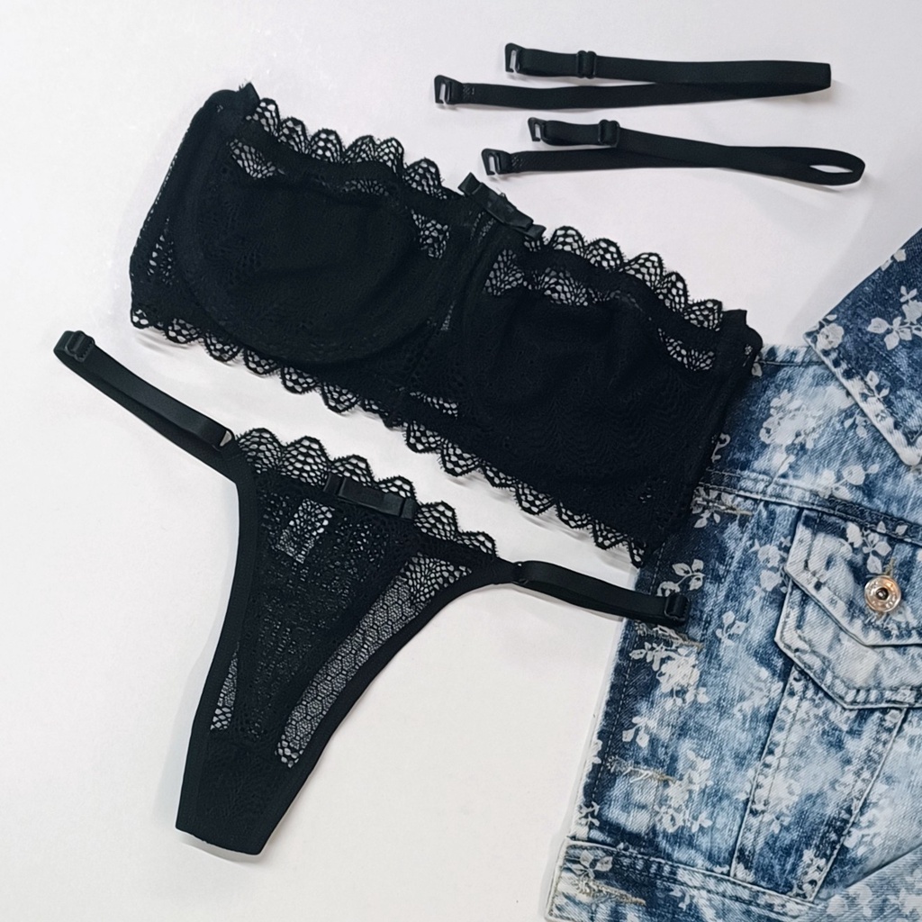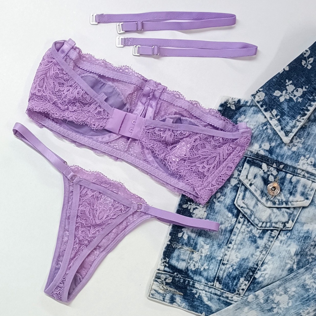 Conjunto Nara alça removível Ref.618 Sem bojo em renda com aro com forro tomara que caia