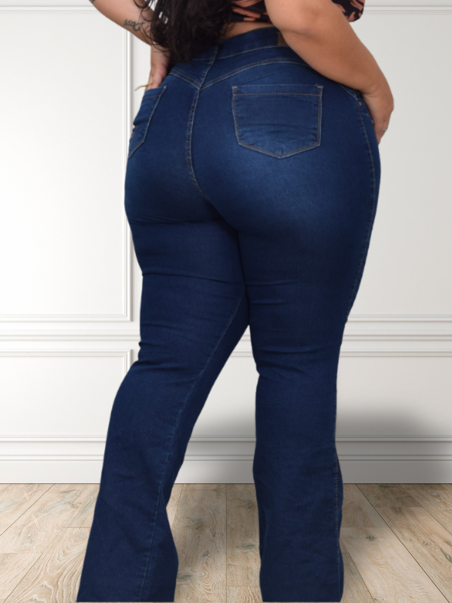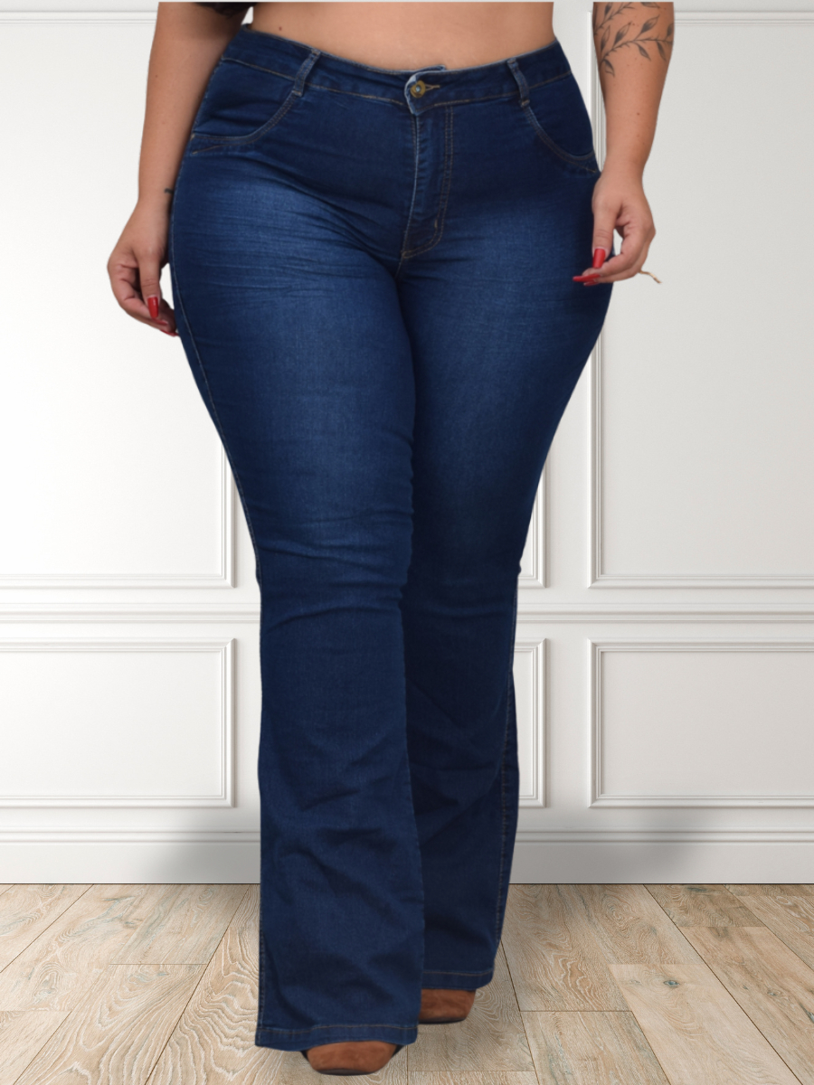 Calca Flare Jeans Plus Size Feminina Cintura Alta Com Lycra Seleção Jeans Premium
