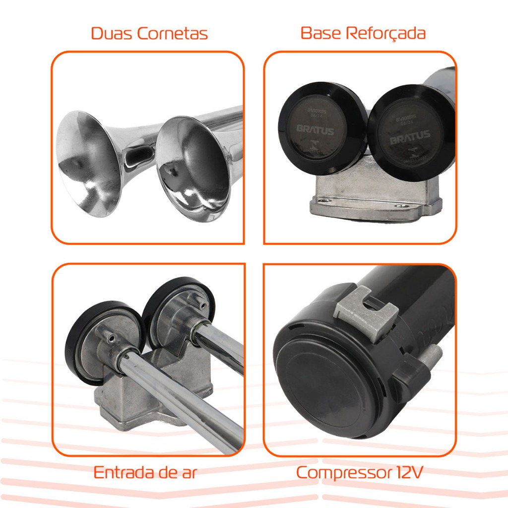 Kit Buzina Maritima Cromada 2 Cornetas Com Compressor 12V Qualidade Premium Som Muito Alto