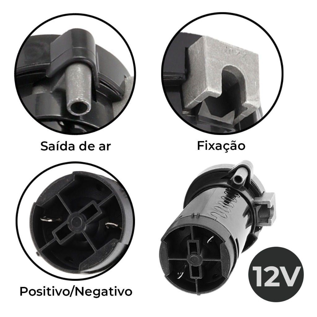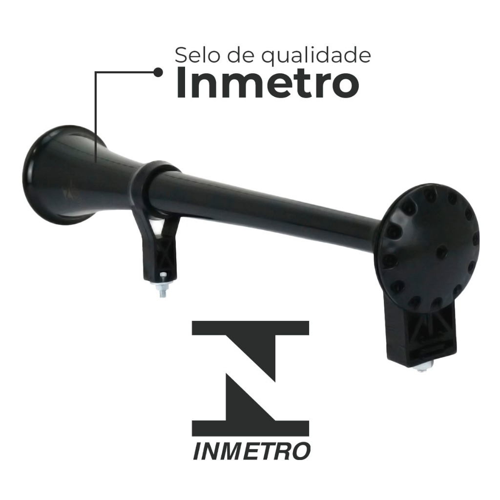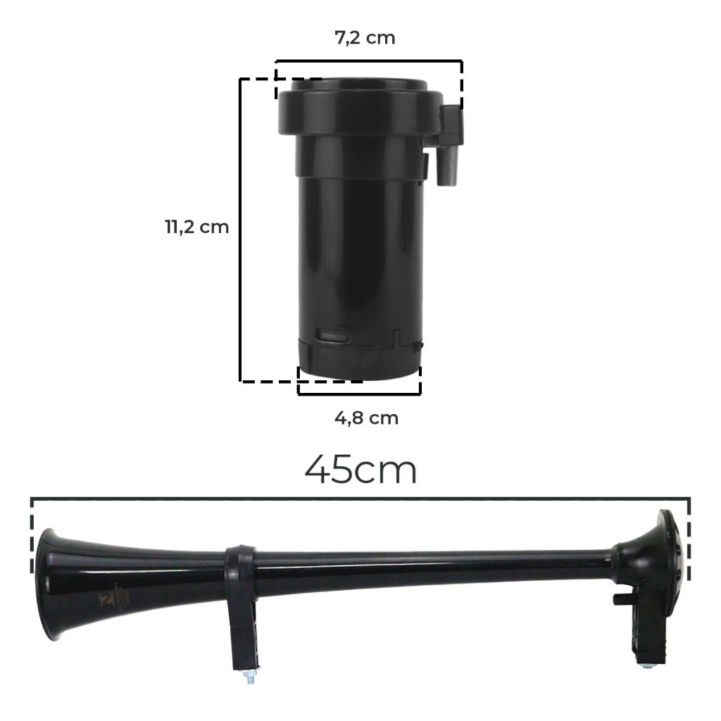 Buzina Ar Eletropneumática 1 Corneta Preta Com Compressor 12V Caminhao Barco Lancha Carro Automotiva
