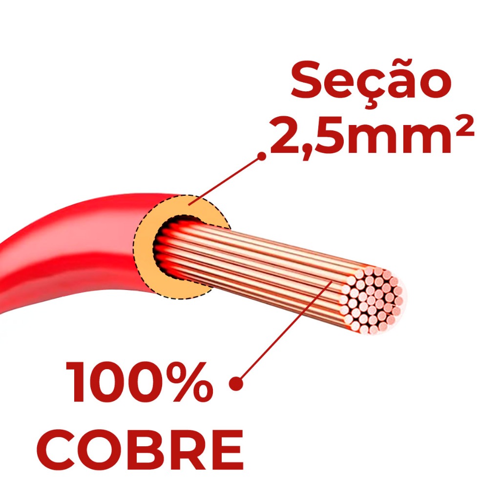 Cabo PP 2x2,5mm 50m Rolo 100% Cobre Puro Flexível Carro Carretinha Caminhões Extensão Elétrica