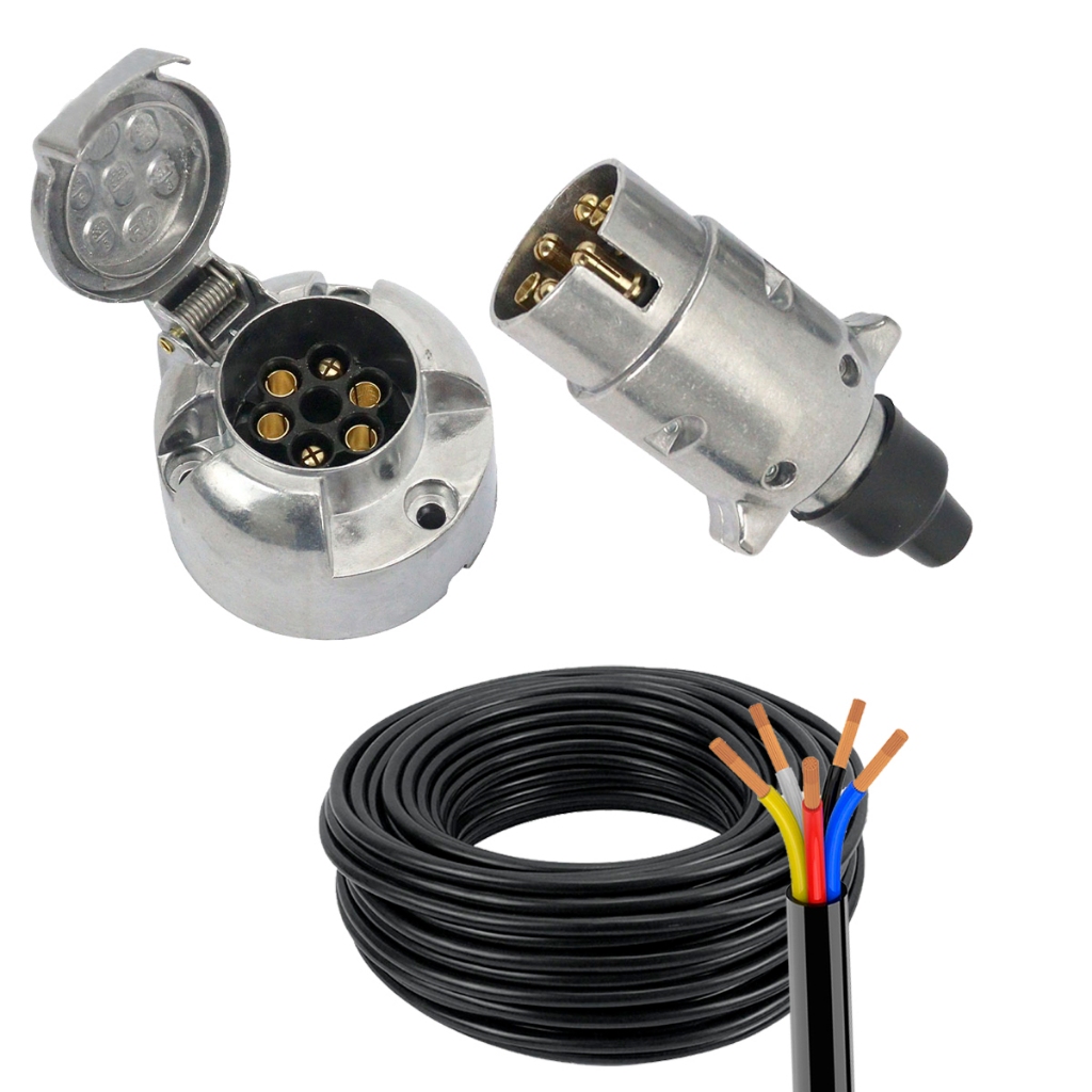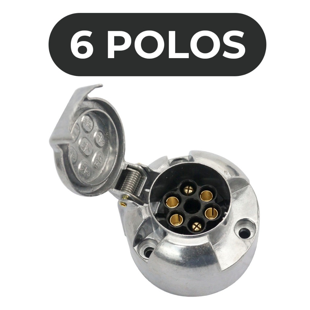 Kit Tomada Engate Reboque Alumínio Completa 6 Polos + 5m Cabo PP 6 Vias Carro Cavalo Mecânico