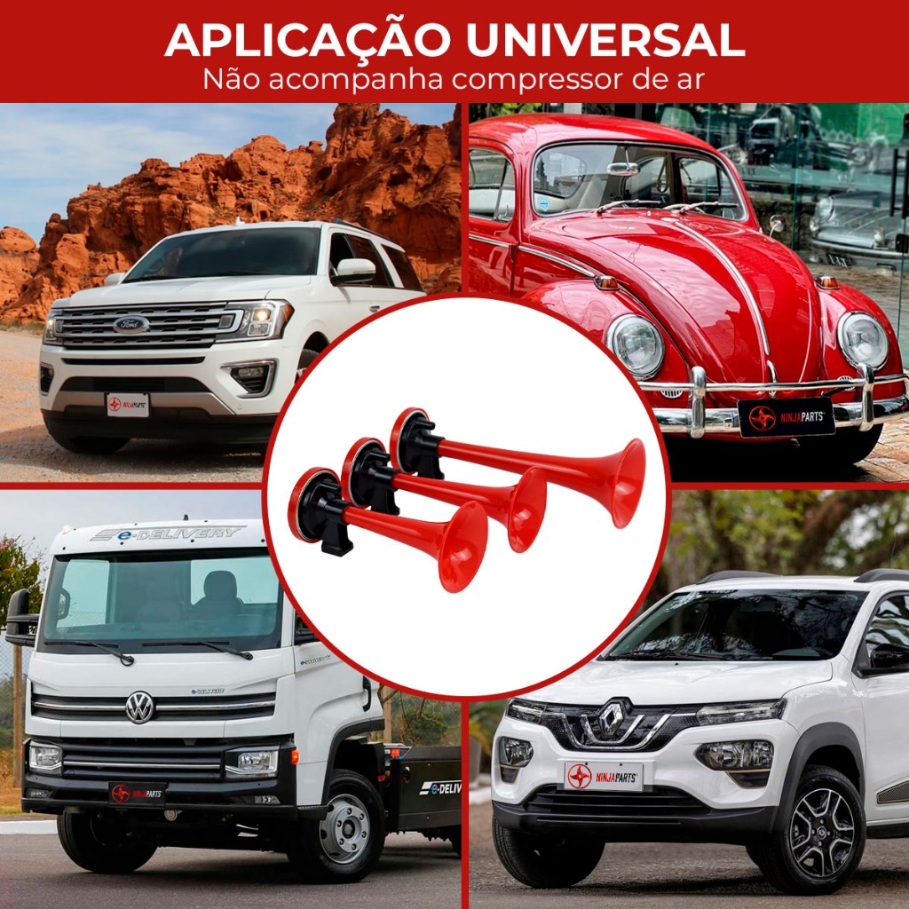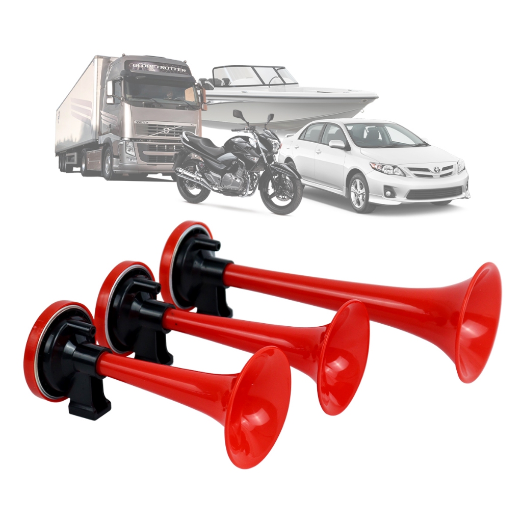 Buzina A Ar Caminhão 3 Cornetas Verdureiro Kit Completo Universal Carro Moto Jeep Barco Som Alto