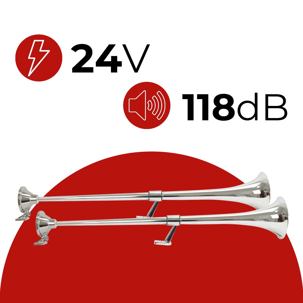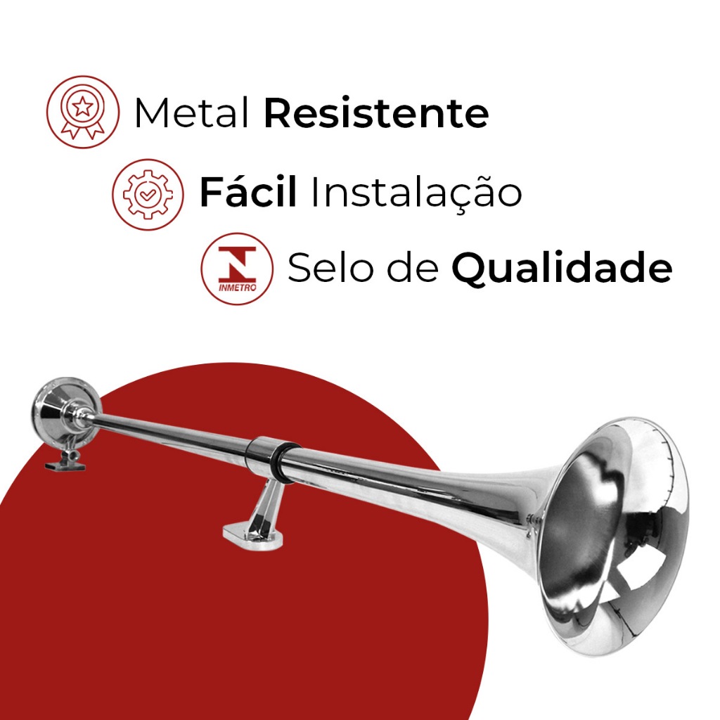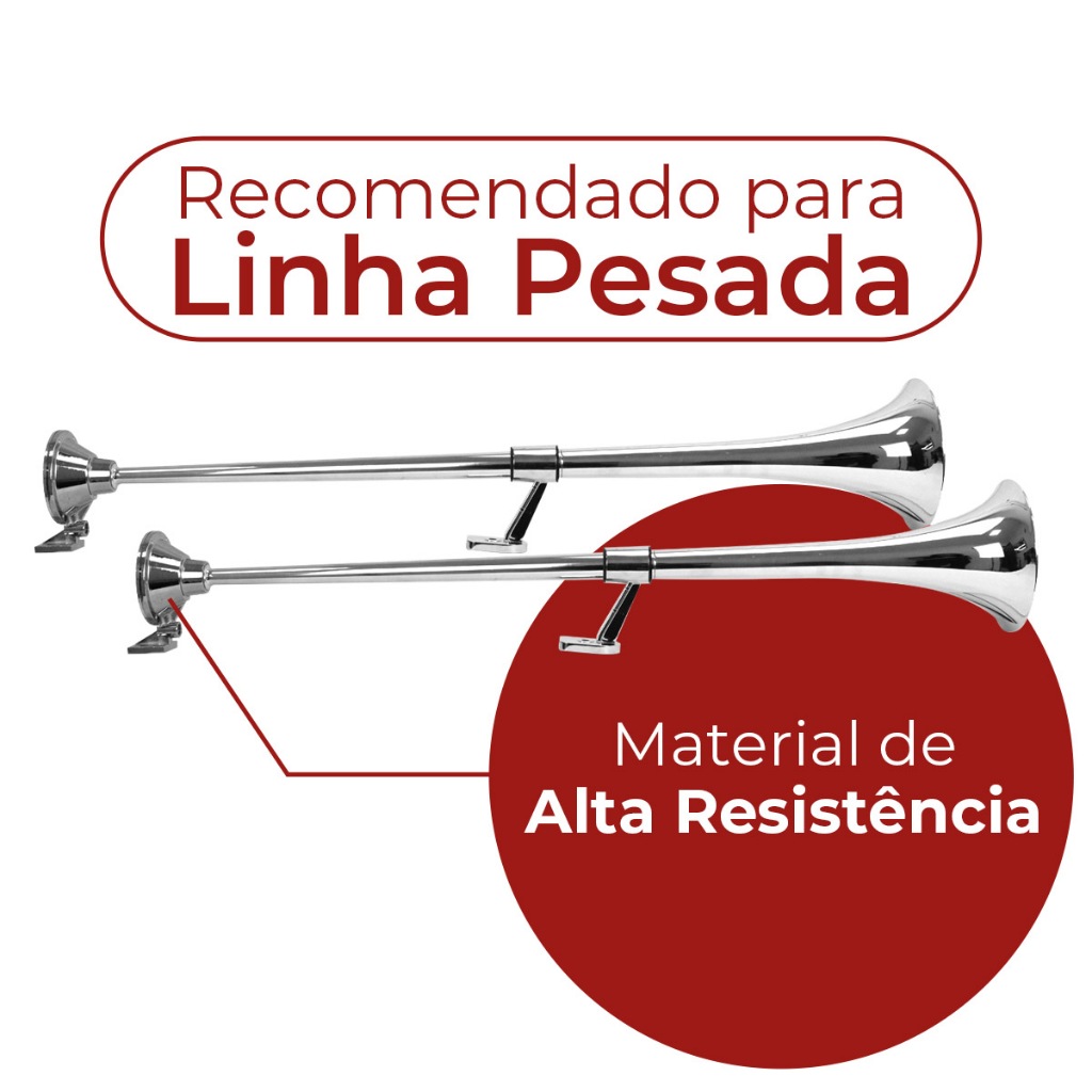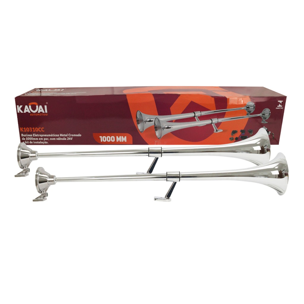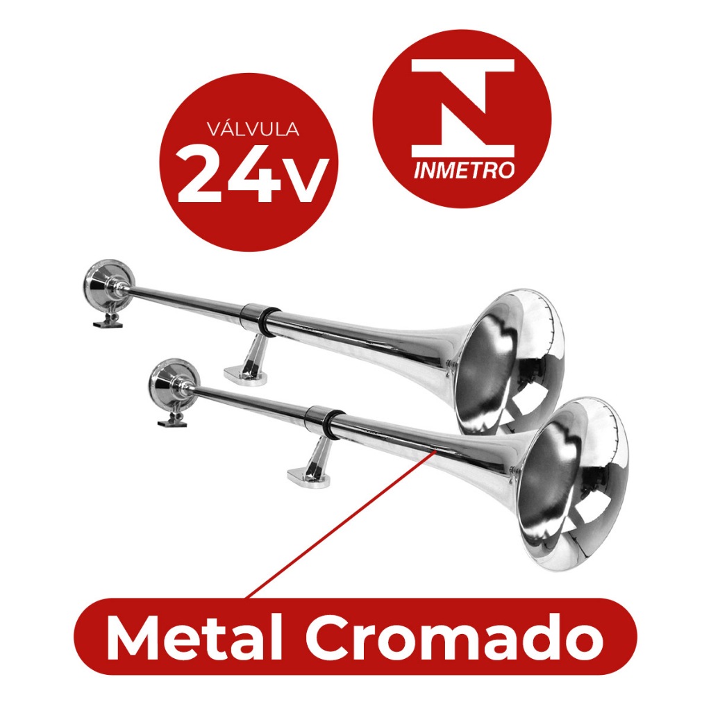 Buzina Maritima Caminhão 1 Metro Par Kit 24V Completo Com Válvula 1/2 Conexões Cromada Caminhão