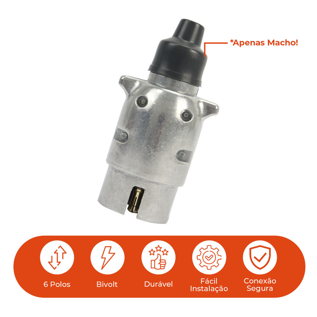 Tomada Macho Reboque 6 Polos Engate Alumínio Cromado Carreta Carretinha Cavalo Mecânico Original