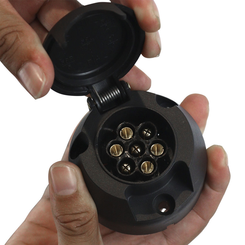 Kit Engate Reboque 7 Polos Bivolt Plastico Preto Macho Femea Carretinha Cavalo Facil Encaixe