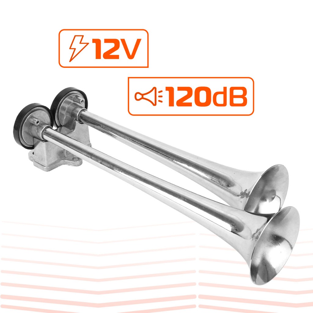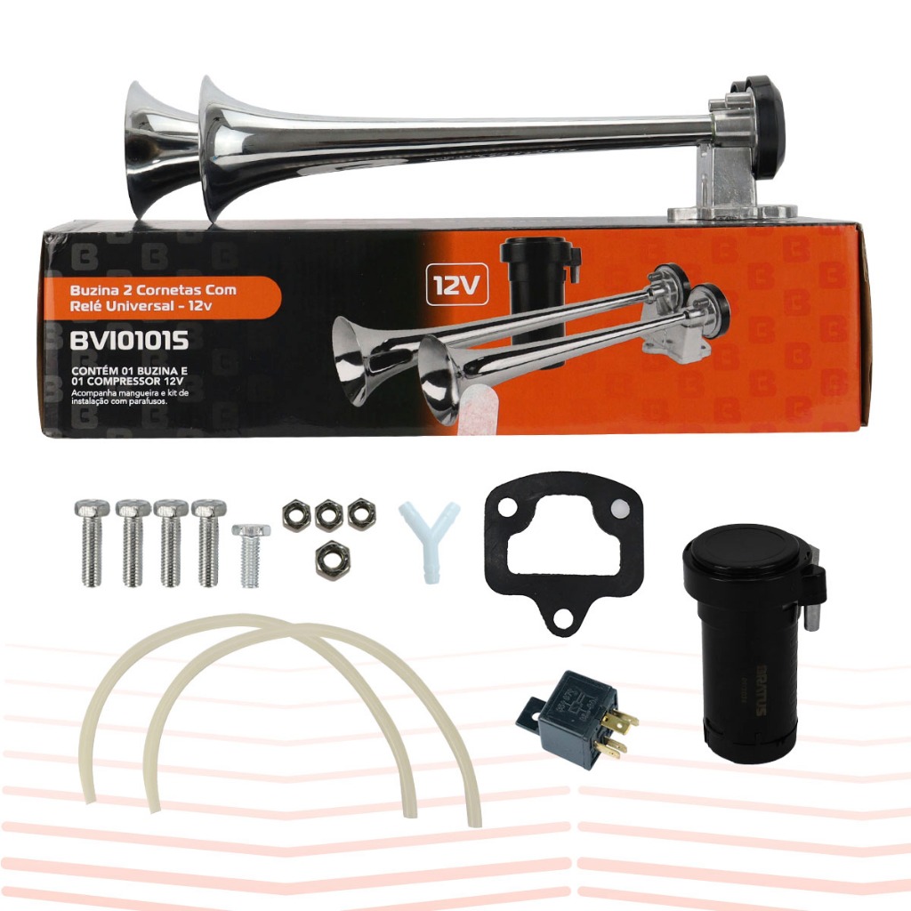 Kit Buzina Maritima 12V Cromada 2 Cornetas Com Compressor Qualidade Premium Som Muito Alto Bratus