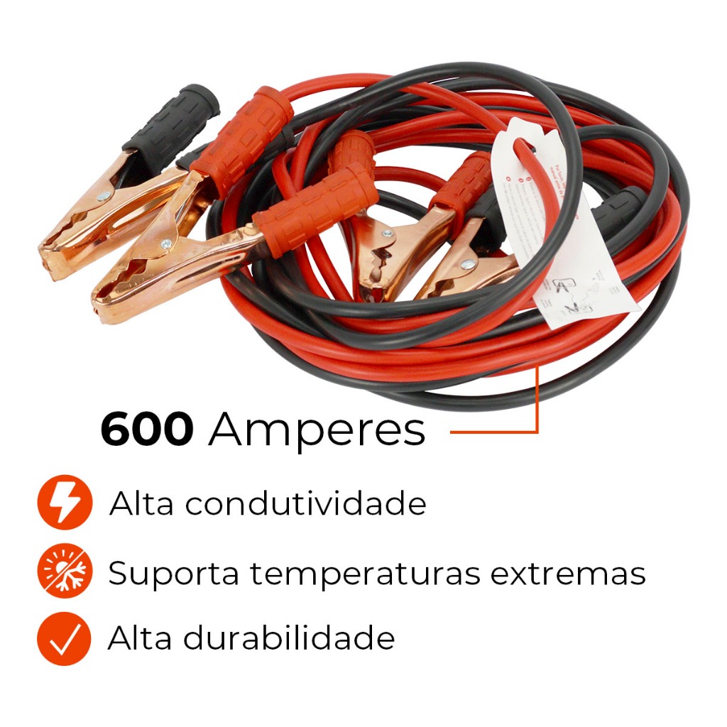 Cabo Chupeta Bateria 5 Metros 600a Para Carro Caminhão Moto Com Bolsa Premium Transferencia Cargas