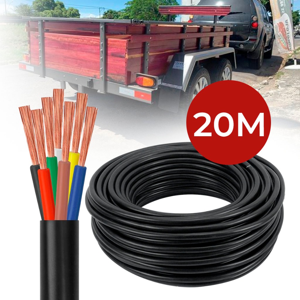 Cabo PP 7 Vias 20m Flexível 1mm Instalação Elétrica Reboque Carretinha Caminhão Caminhonete