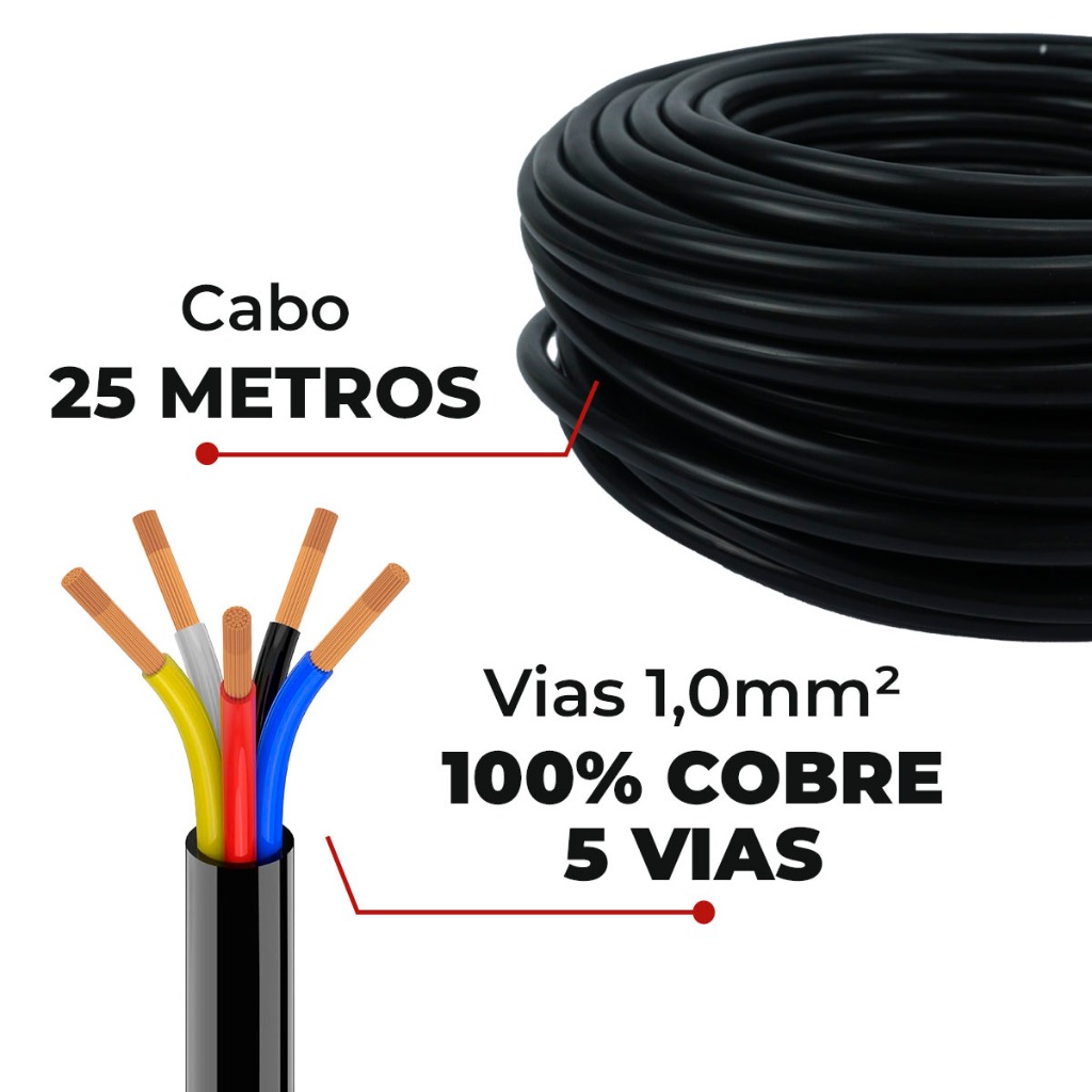 Cabo Pp 5 Vias Flexível 25m Reboque Carretinha Caminhão Alta Qualidade Aplicação Automotiva