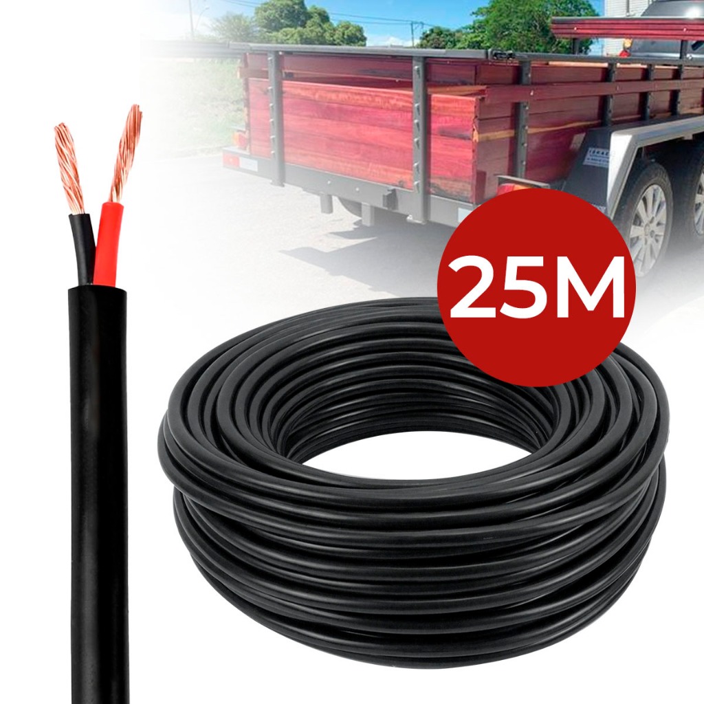 Cabo Pp 2x1,50mm 25 Metros Extensão Rolo Instalação Elétrica 100% Cobre 2 Fios Capa Reforçada