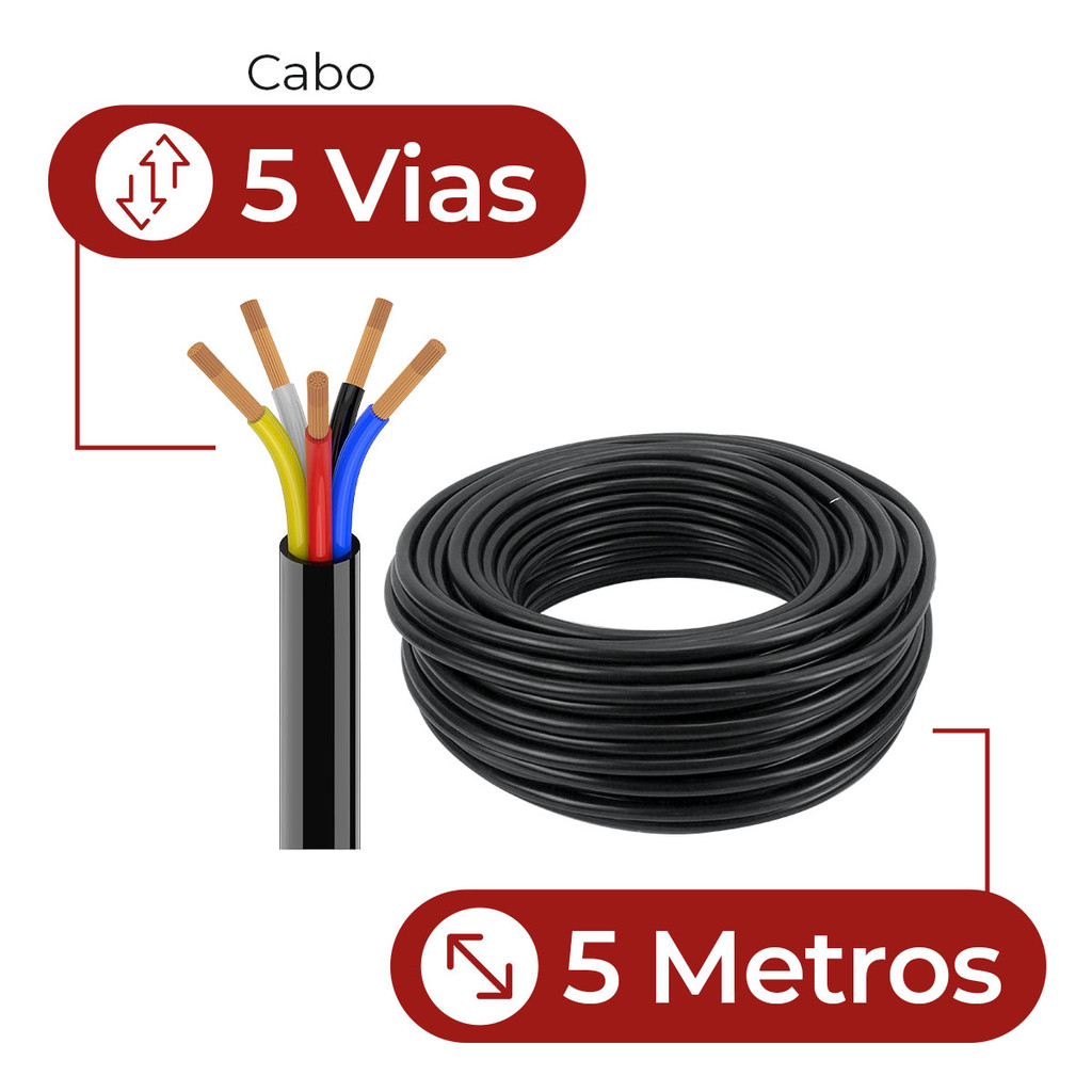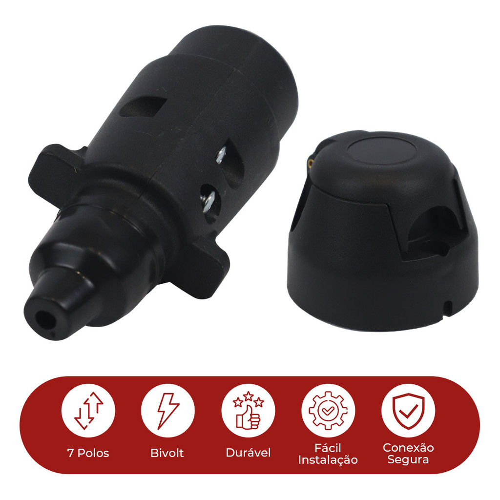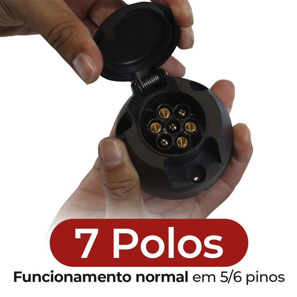 Kit Tomada Engate Reboque 7 Polos Macho Fêmea + Cabo PP 5x1m Resistente Vários Tamanhos Carretinha