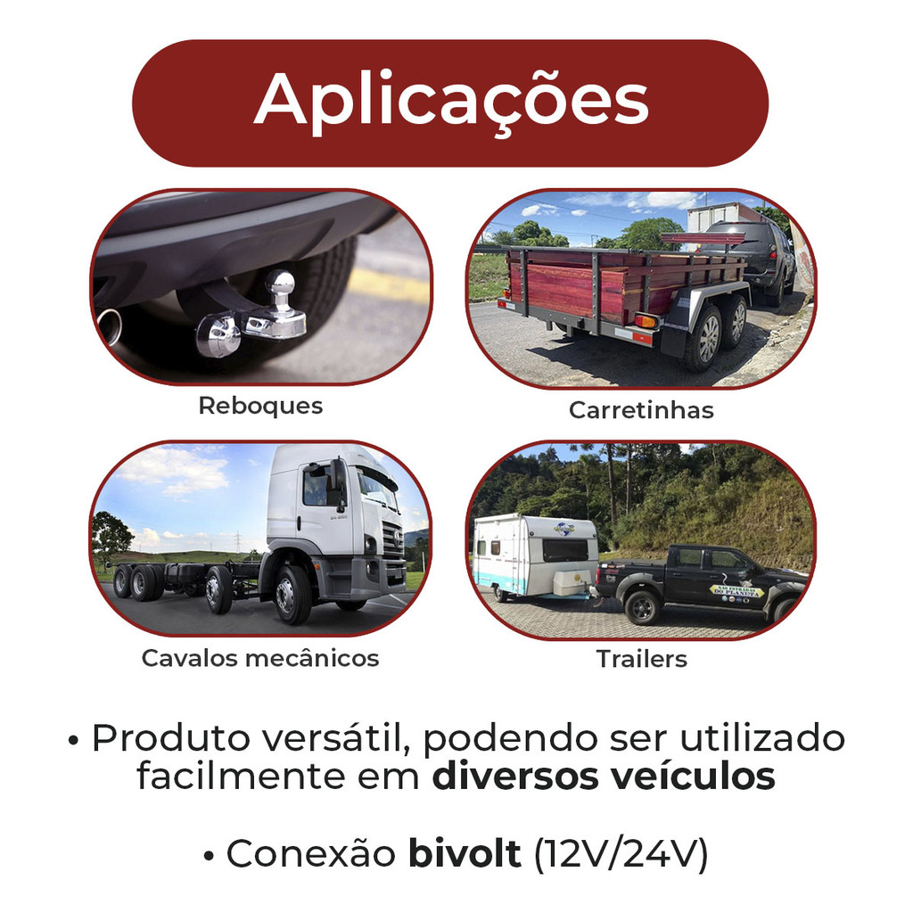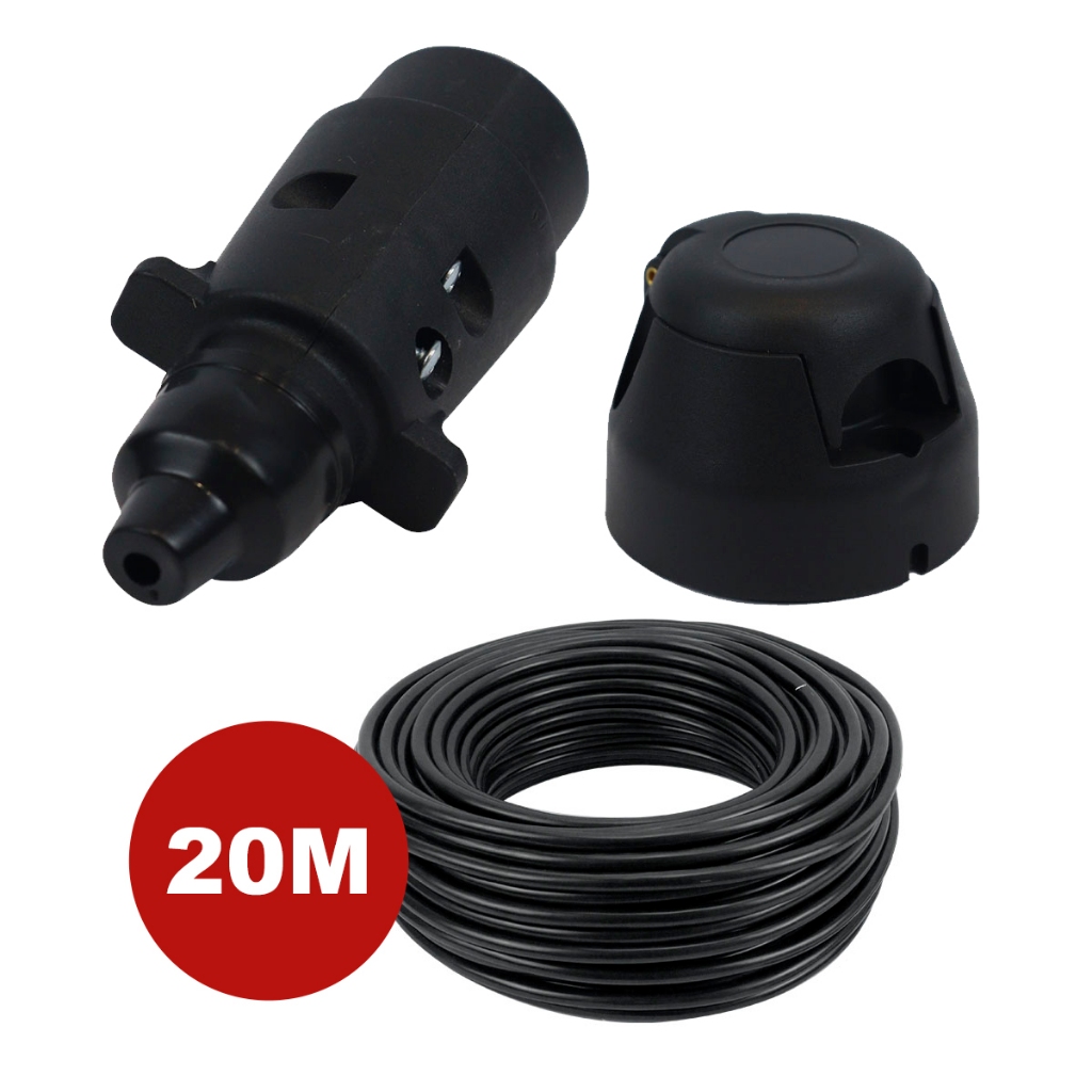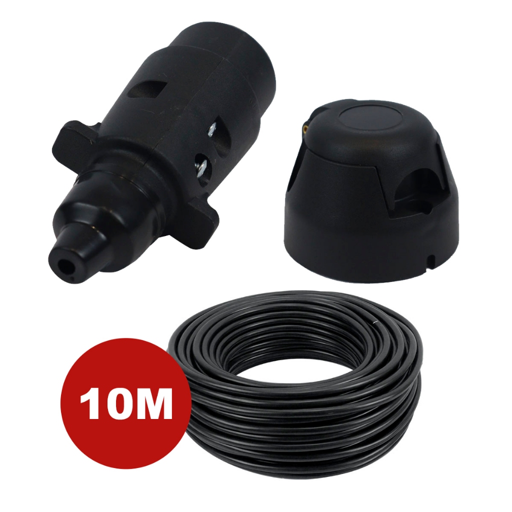 Kit Tomada Engate Reboque 7 Polos Macho Fêmea + Cabo PP 5x1m Resistente Vários Tamanhos Carretinha