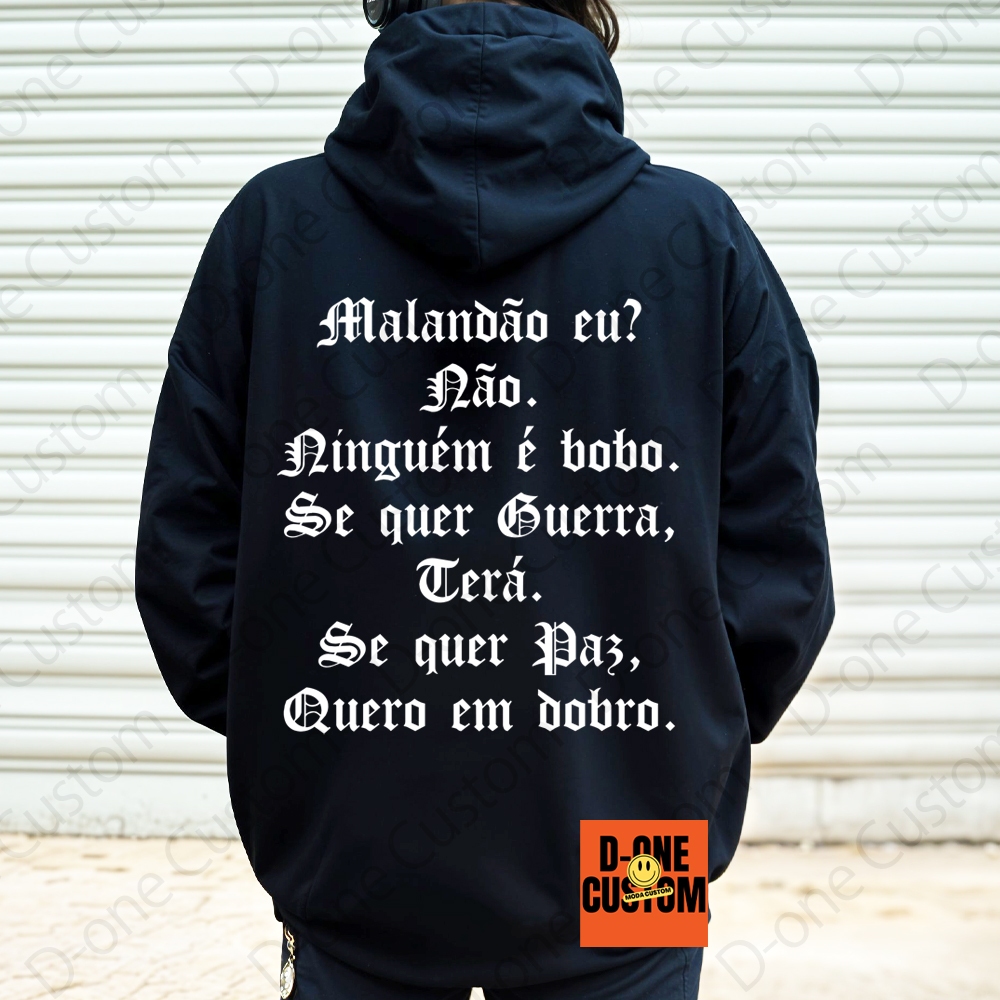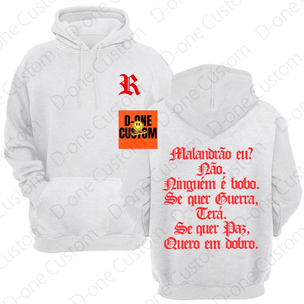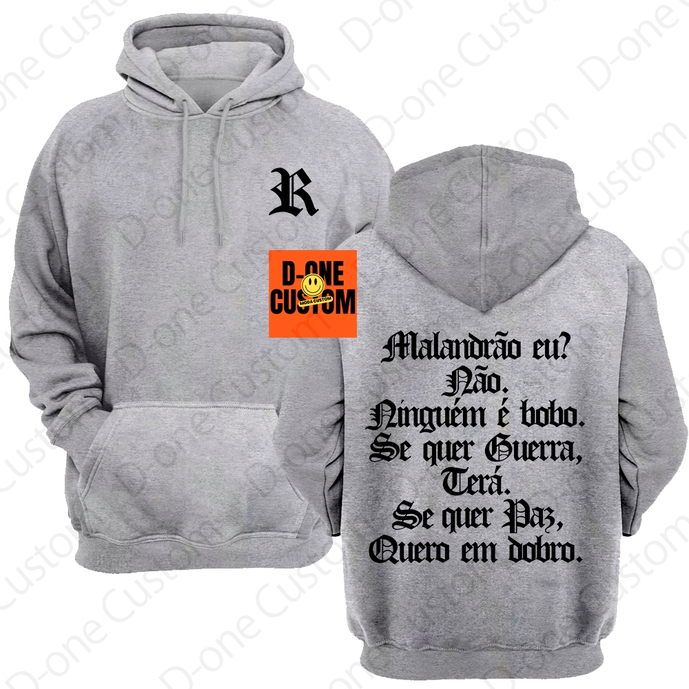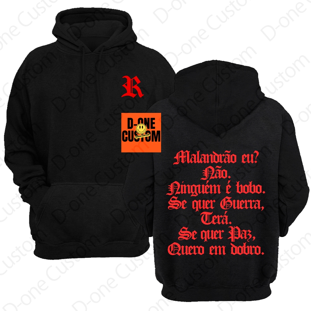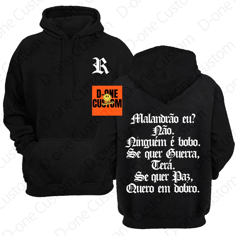Blusa Moletom Racionais MC'S Malandrão Eu Se Quer Guerra Terá Se Quer Paz Quero em Dobro Capuz Bolso