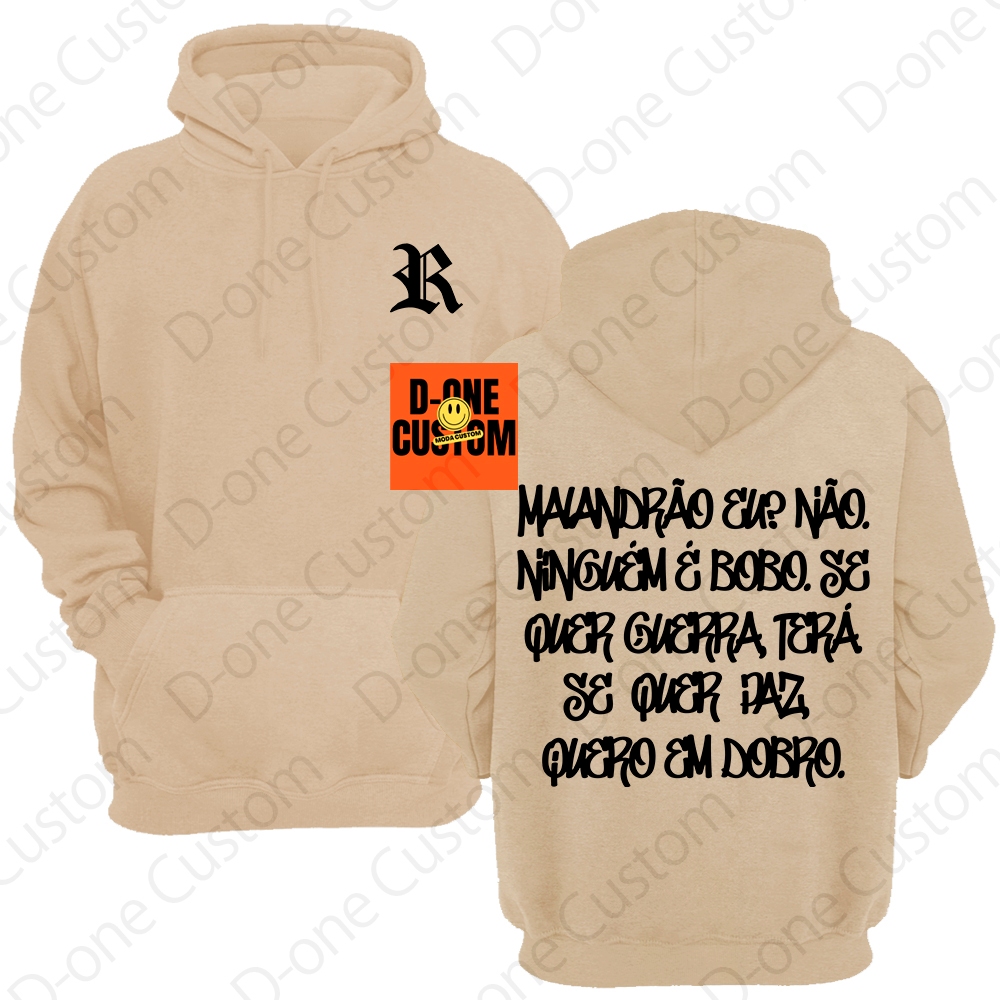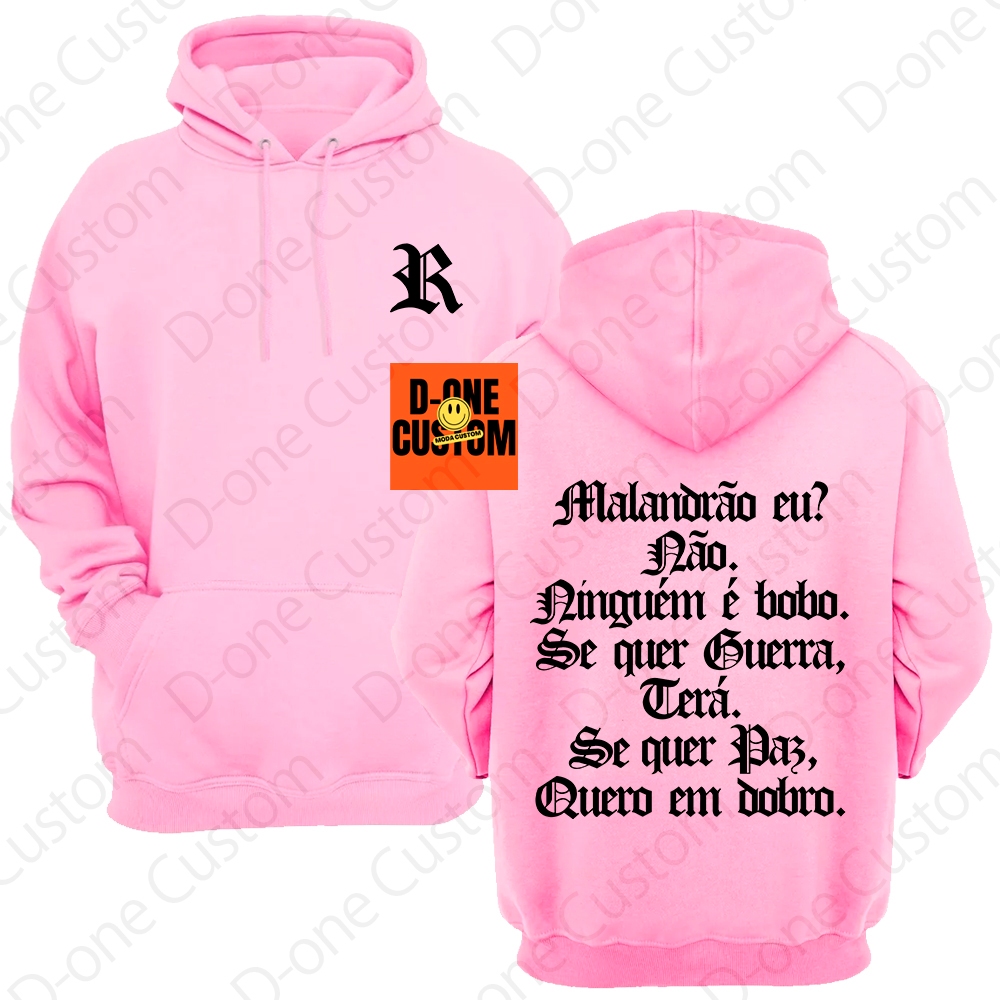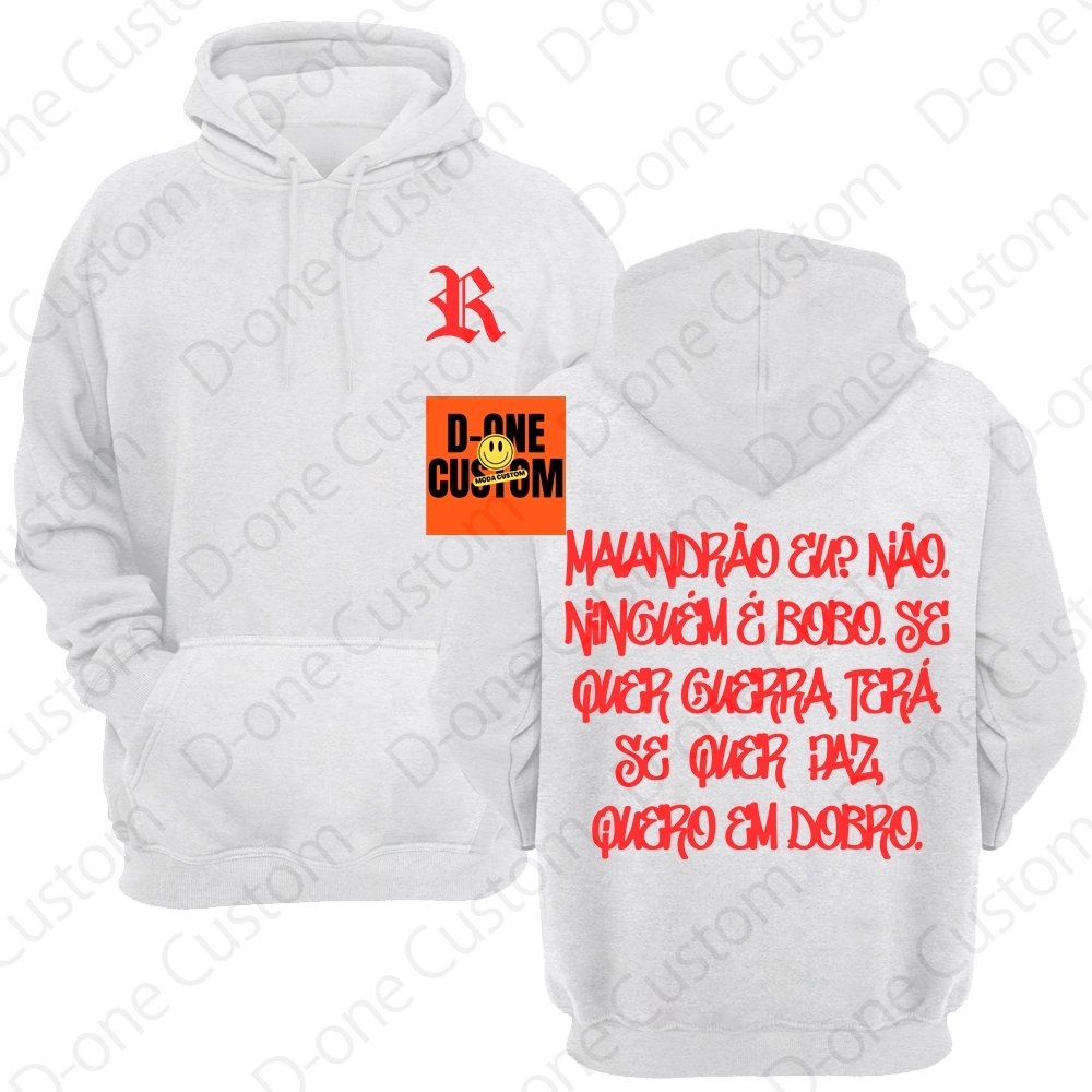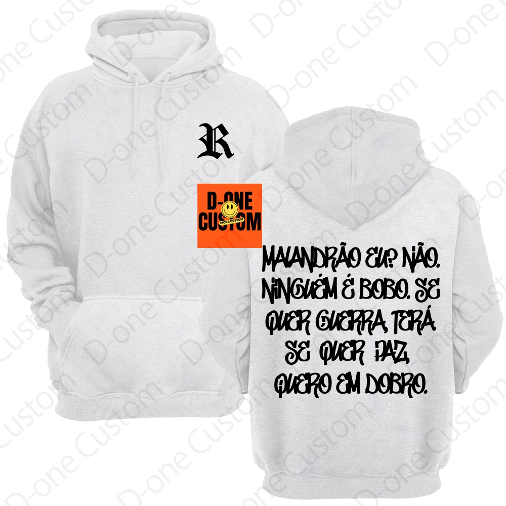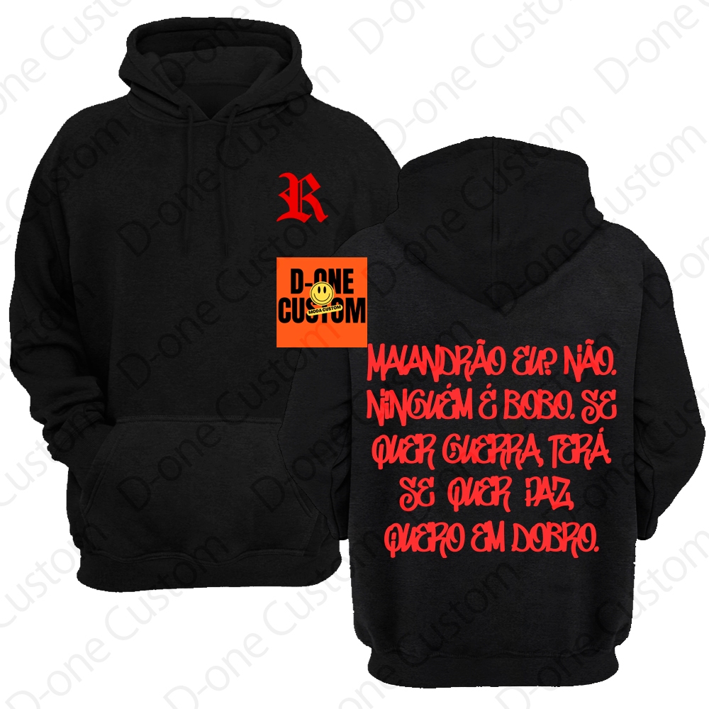 Blusa Moletom Racionais MC'S Malandrão Eu Se Quer Guerra Terá Se Quer Paz Quero em Dobro Capuz Bolso
