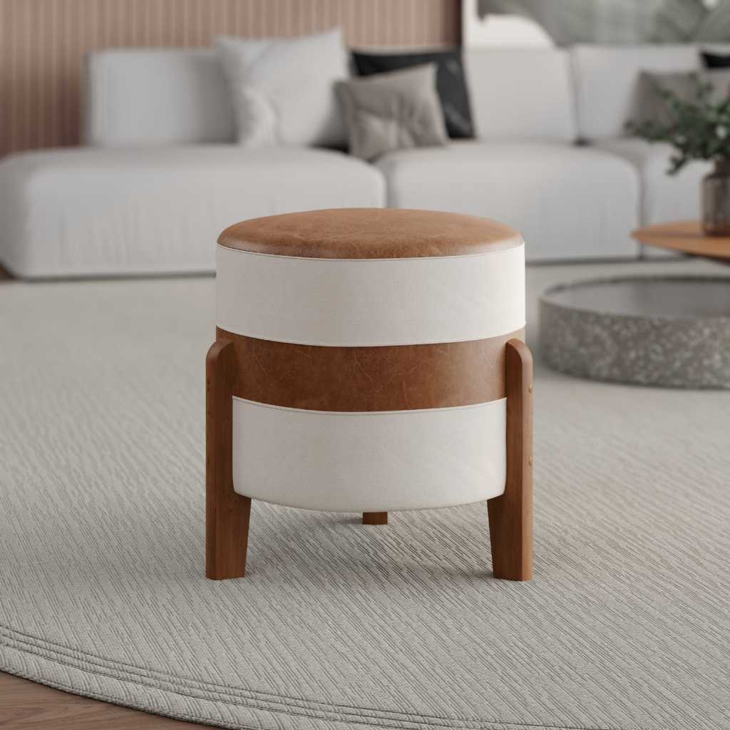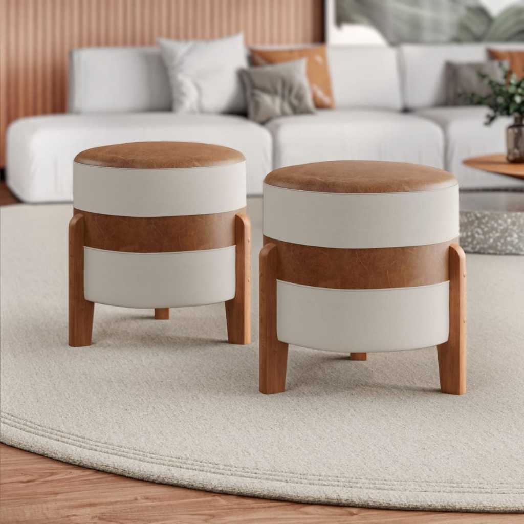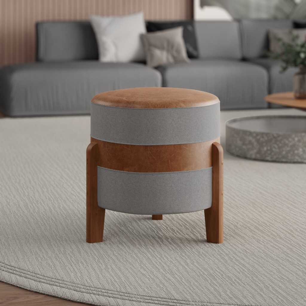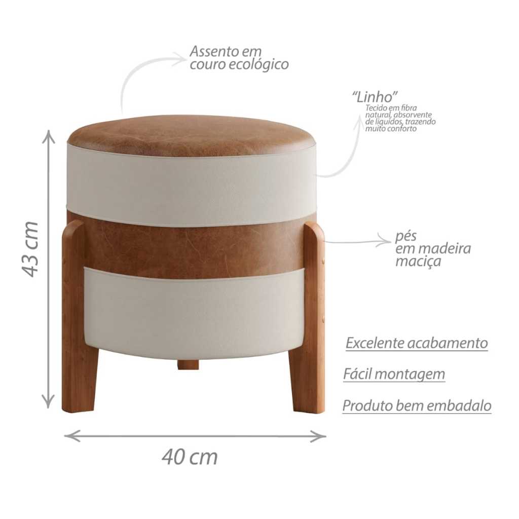 Puff MONTANA Confortável em Couro sintético e Linho PREMIUM Pés De Madeira.