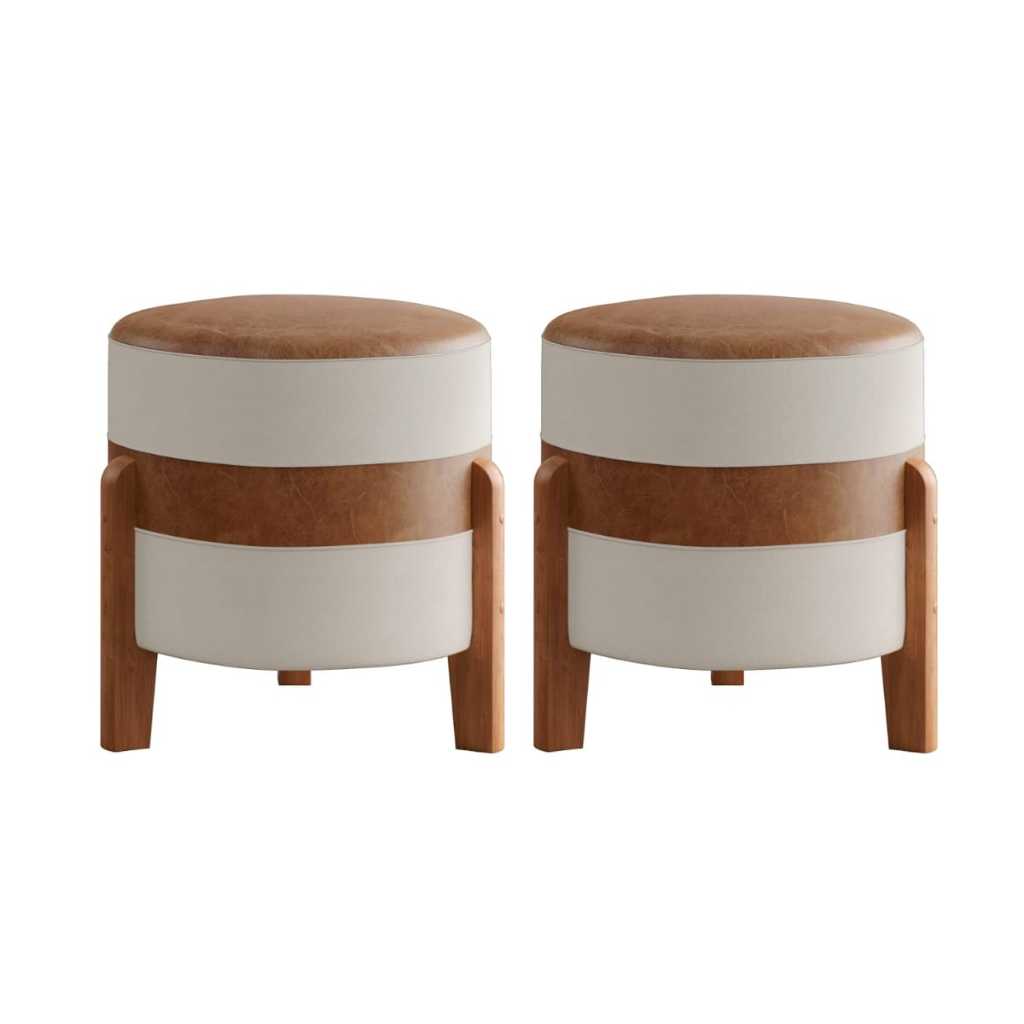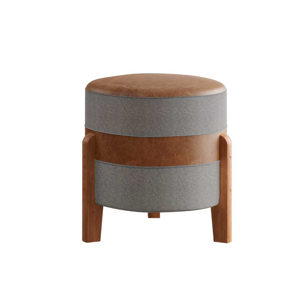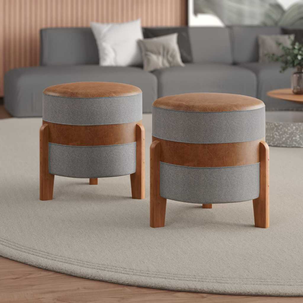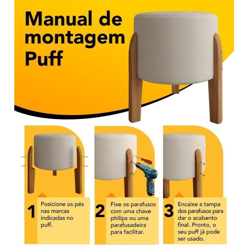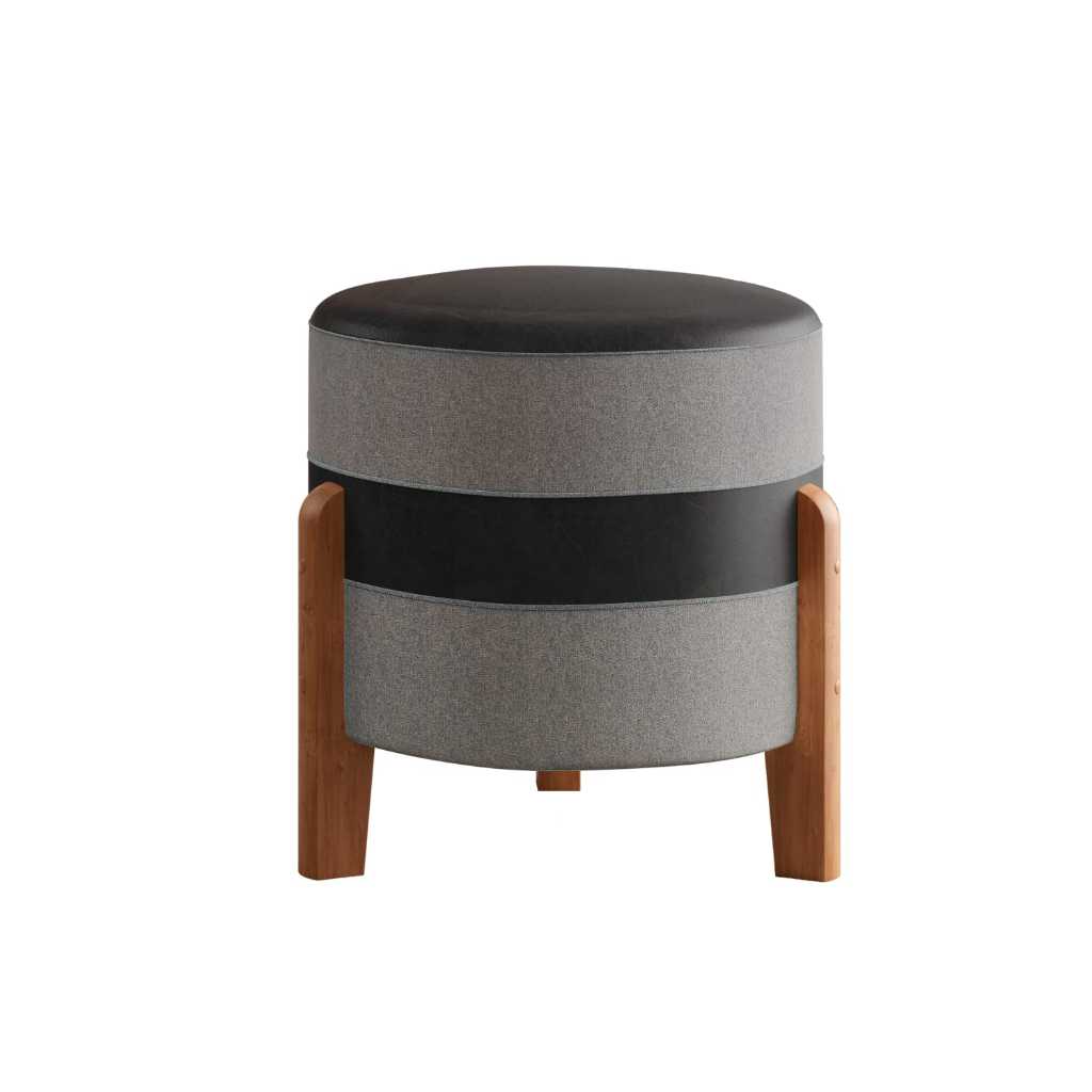 Puff MONTANA Confortável em Couro sintético e Linho PREMIUM Pés De Madeira.