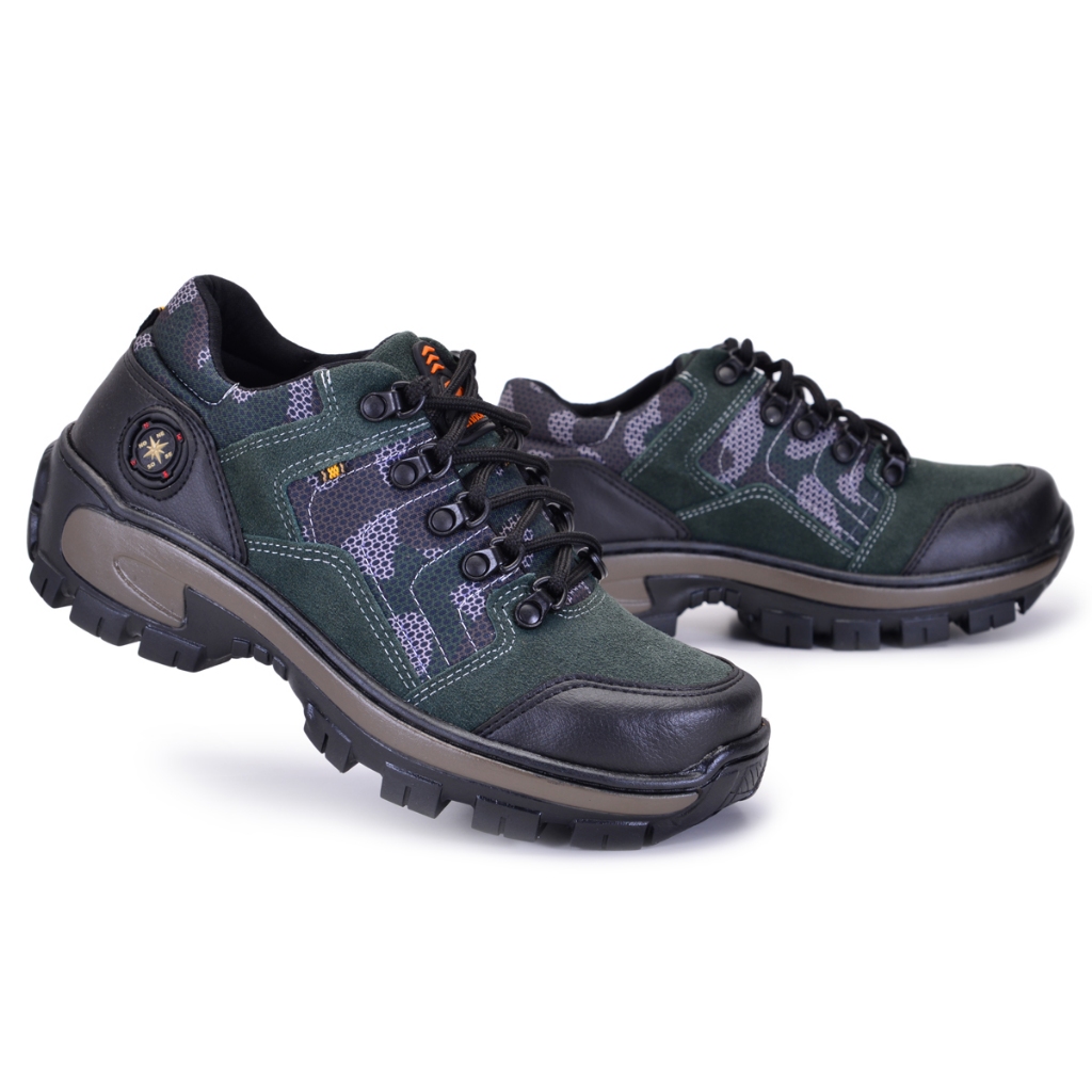 Tênis Coturno Cano Baixo Masculino Tratorado De Couro Camurça Legítimo Costura Reforçada