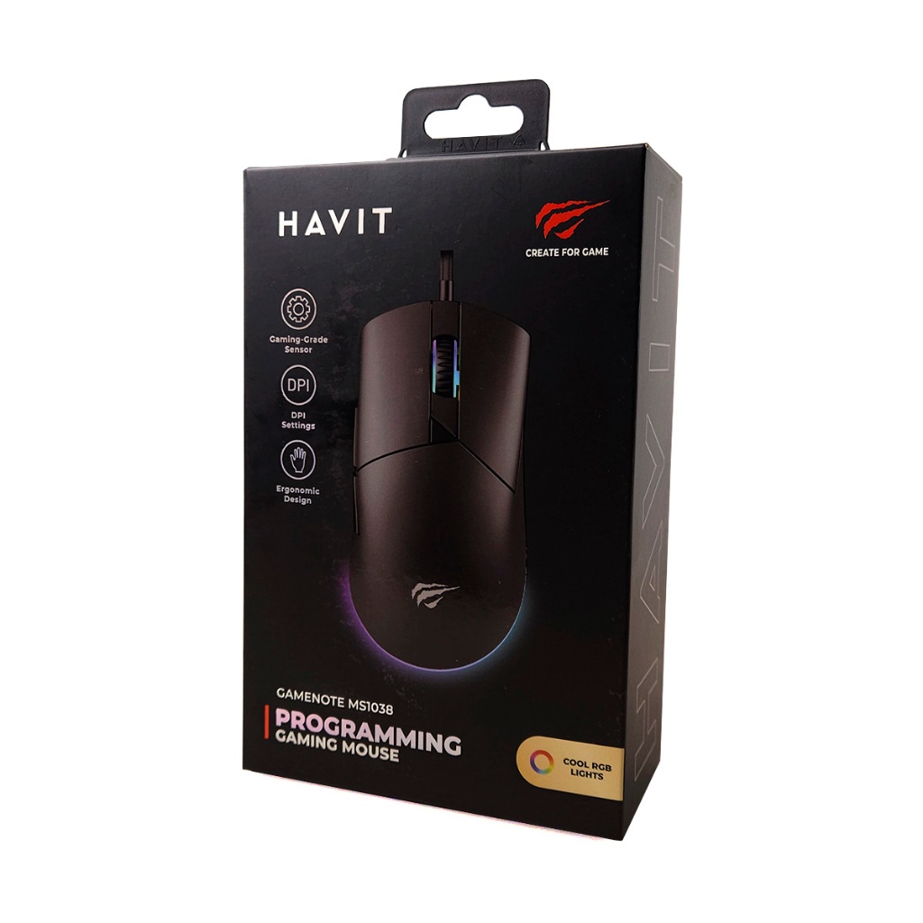 Mouse Gamer Havit MS1038 8000 DPI 7 Botões RGB Preto