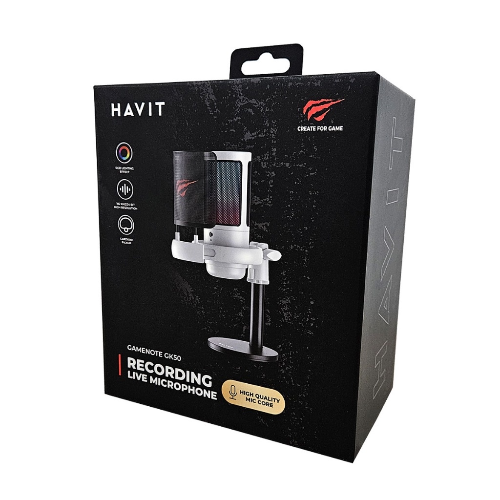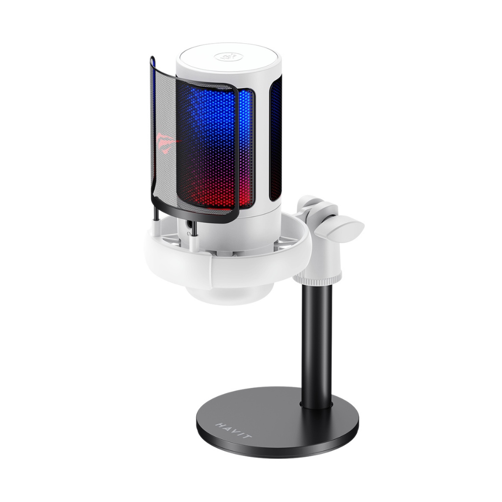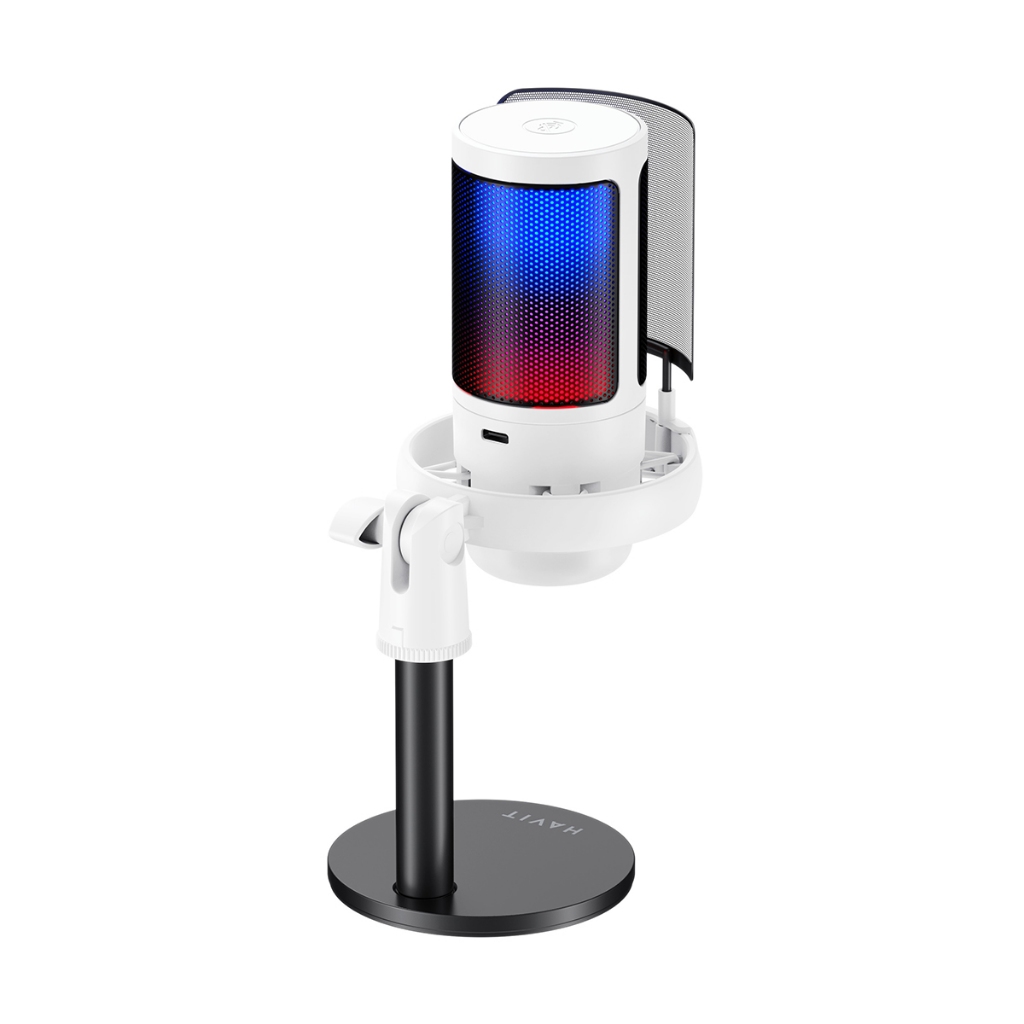 Microfone Gamer Condensador USB Havit GK50 RGB Branco