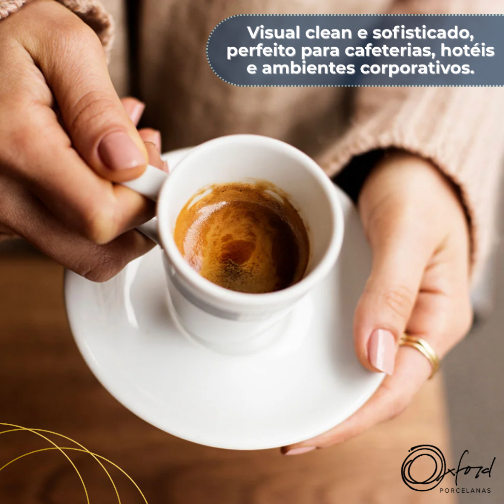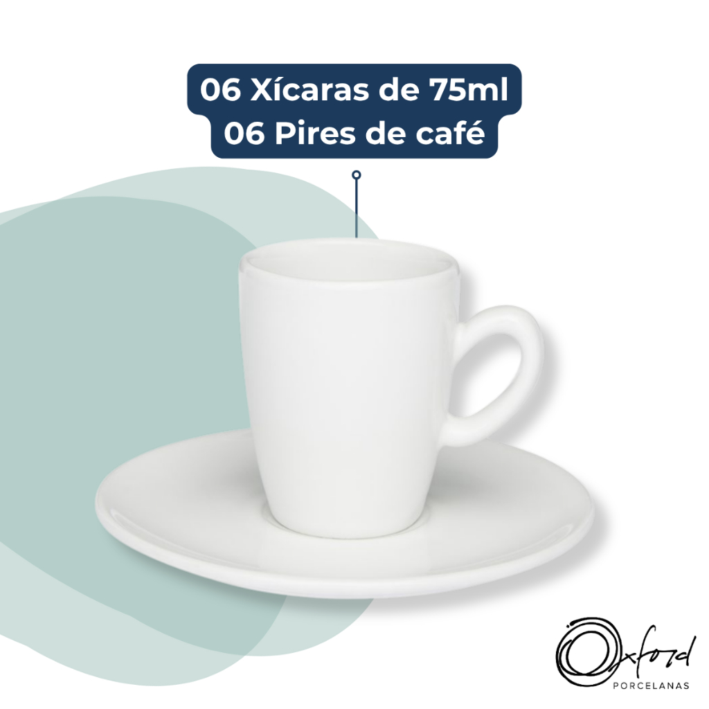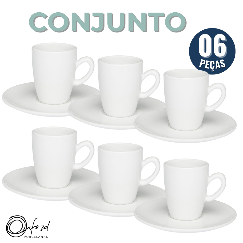 Jogo 6 Xícaras com Pires Cafezinho Expresso Longo 75ml Branco Oxford Porcelana