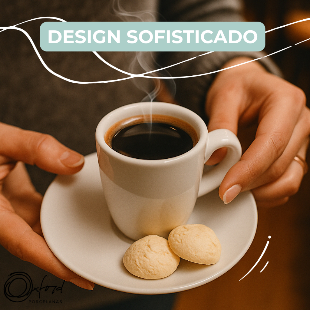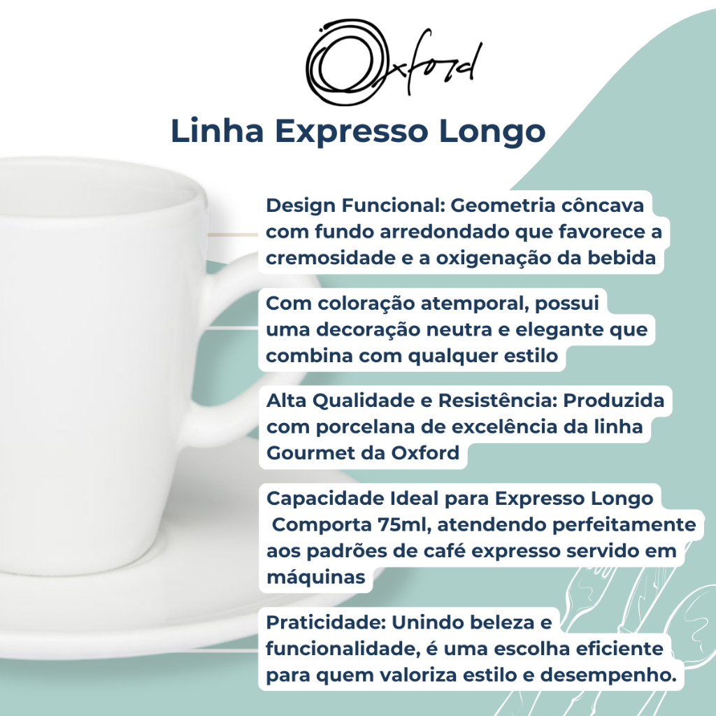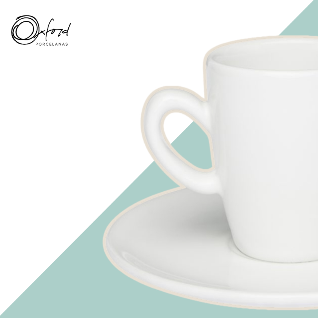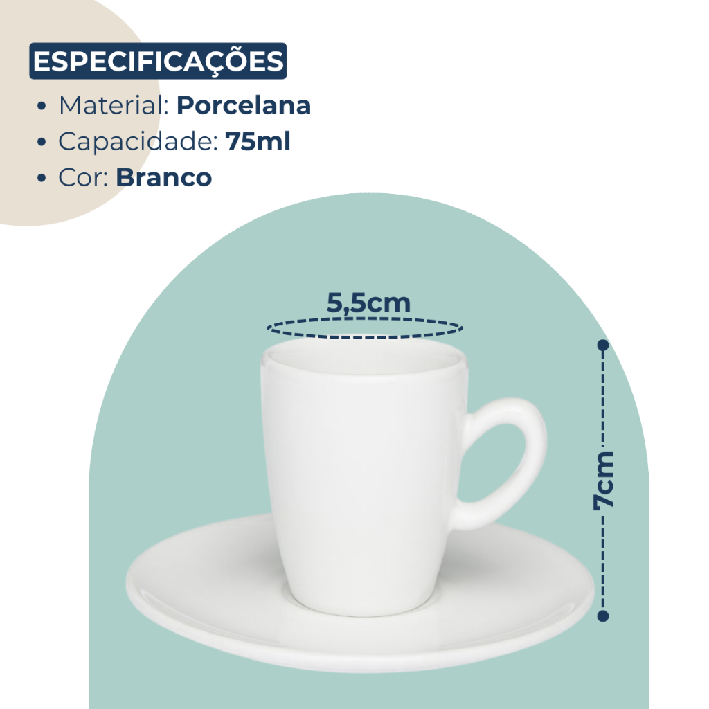 Jogo 6 Xícaras com Pires Cafezinho Expresso Longo 75ml Branco Oxford Porcelana