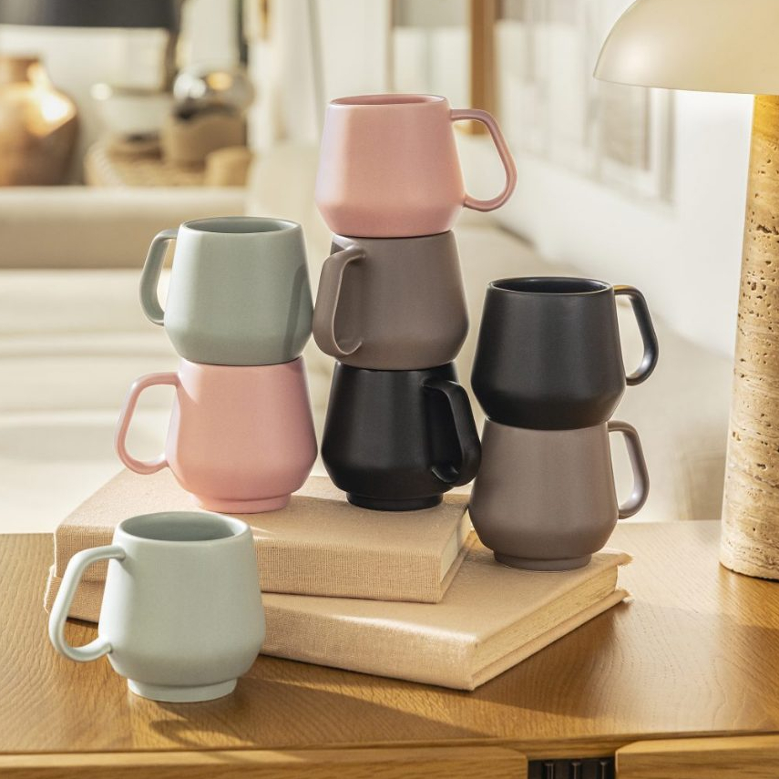 Jogo 4 Canecas Chá Café Chubby 330ml Empilhavel Preto Fosco Acetinado Oxford