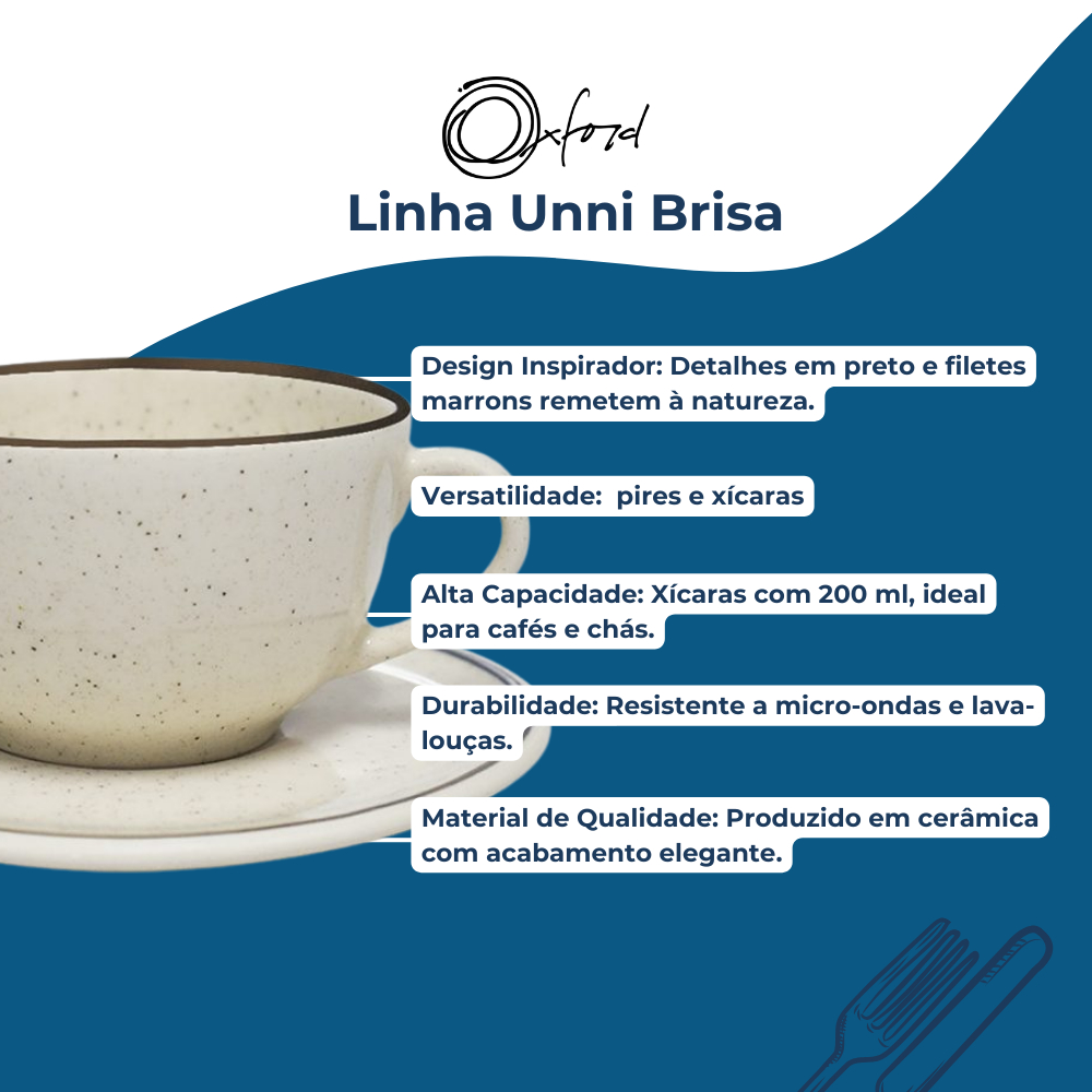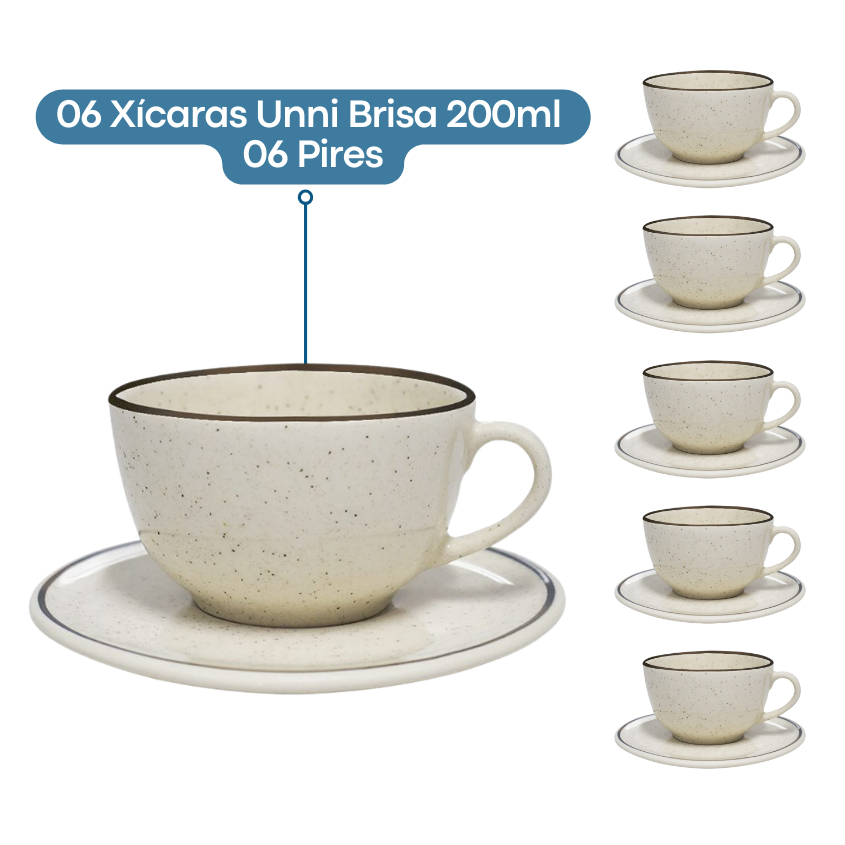 Jogo 6 Xícaras de Chá Café 200ml com Pires Brisa Oxford