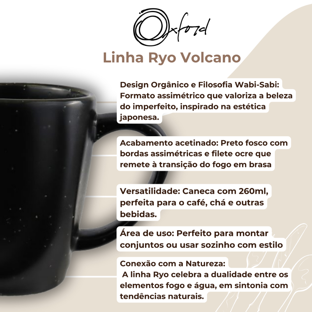 Jogo 6 Canecas Café Chá Ryo Volcano 260ml Oxford Porcelanas