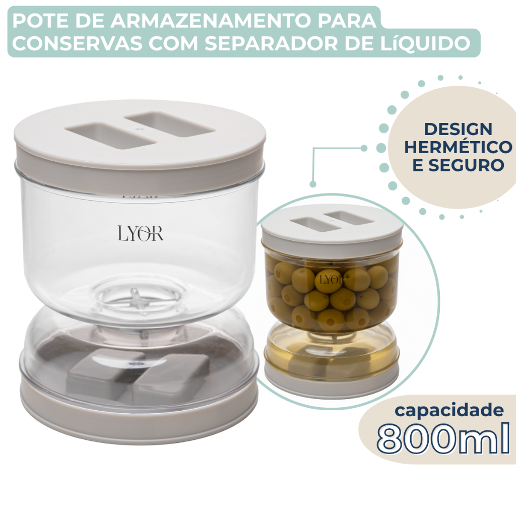 Pote de Armazenamento Hermético para Conservas com Separador de Líquido 800ml