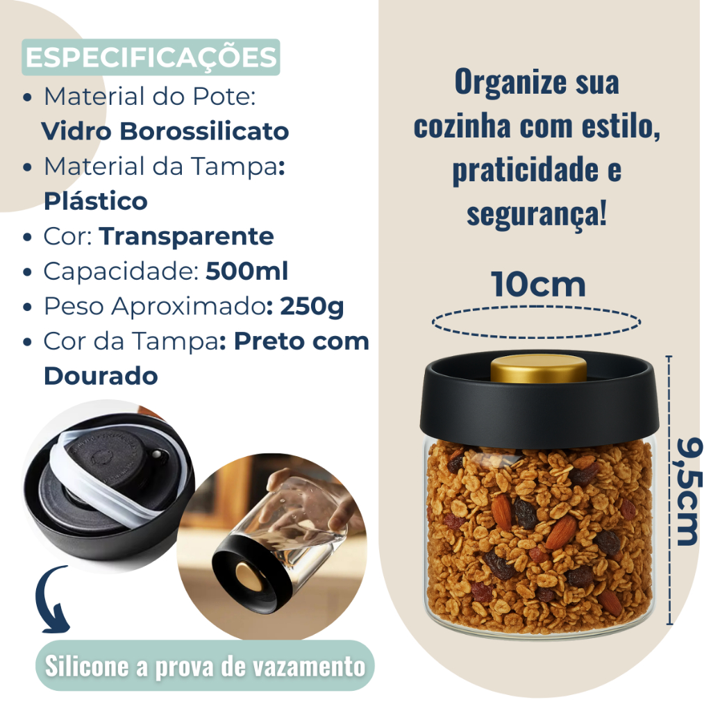 Pote de Vidro Hermético 500ml Com Tampa A Vacuo Porta Mantimentos