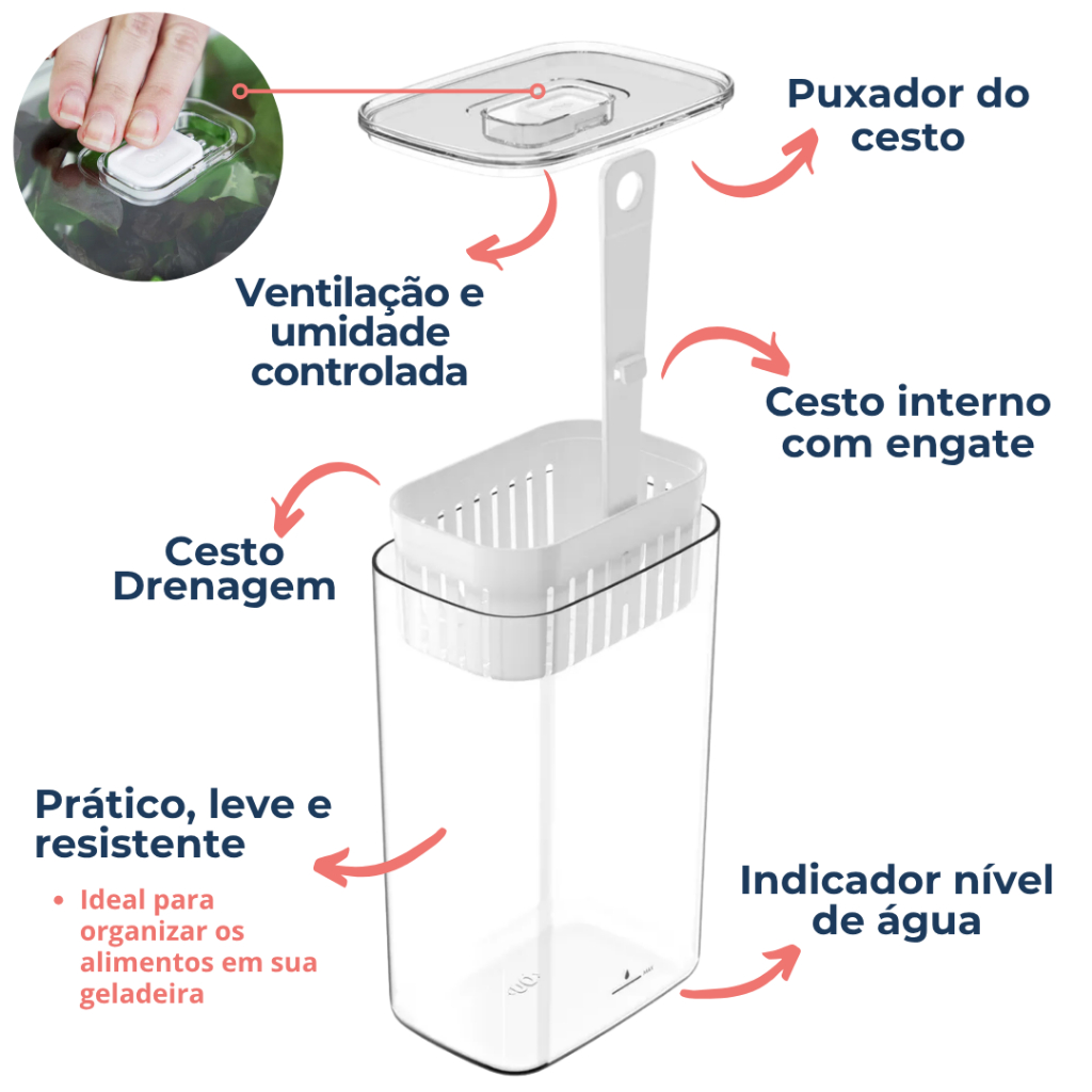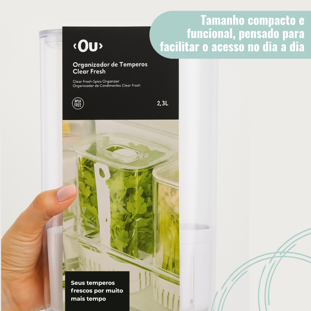 Organizador de Temperos Frescos Geladeira 2,3L Conserva Tempero Clear Fresh Ou