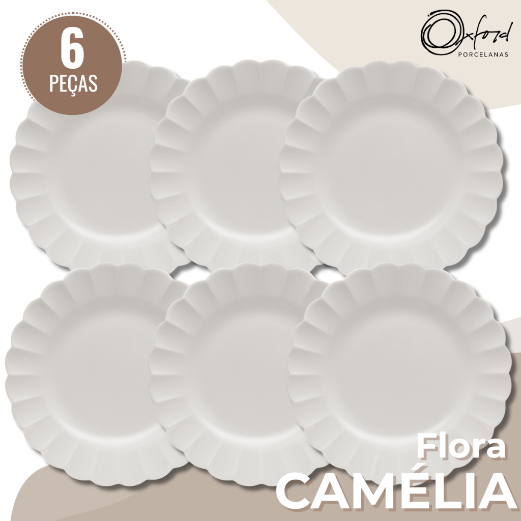 Jogo 6 Pratos Rasos Flora Camelia 27,5cm Porcelana Oxford