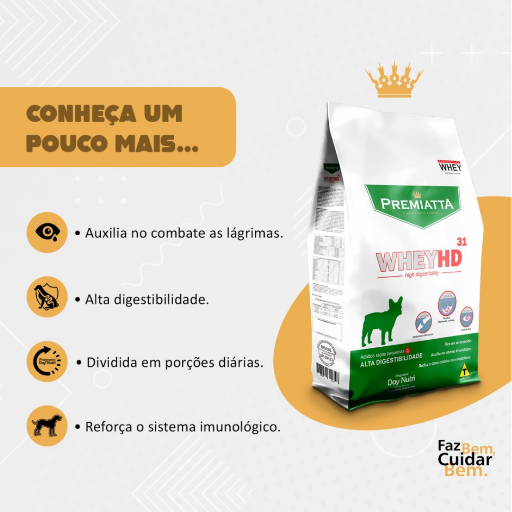 Ração Premiatta Whey Hd 3Kg Para Cães Filhotes De Raças Pequenas Pacote Lágrima Ácida