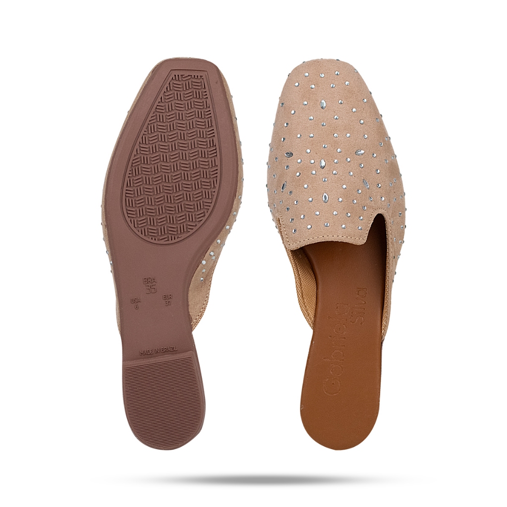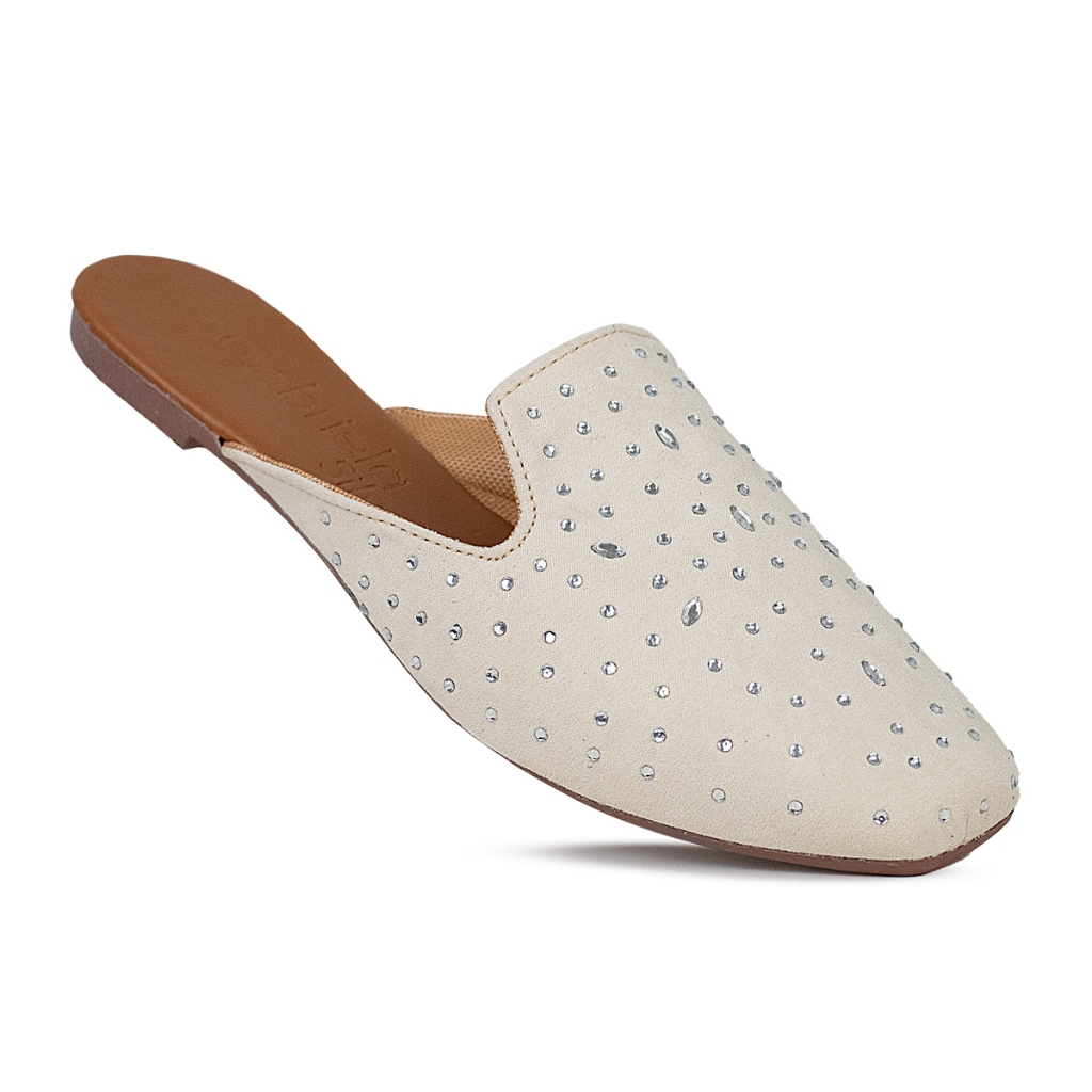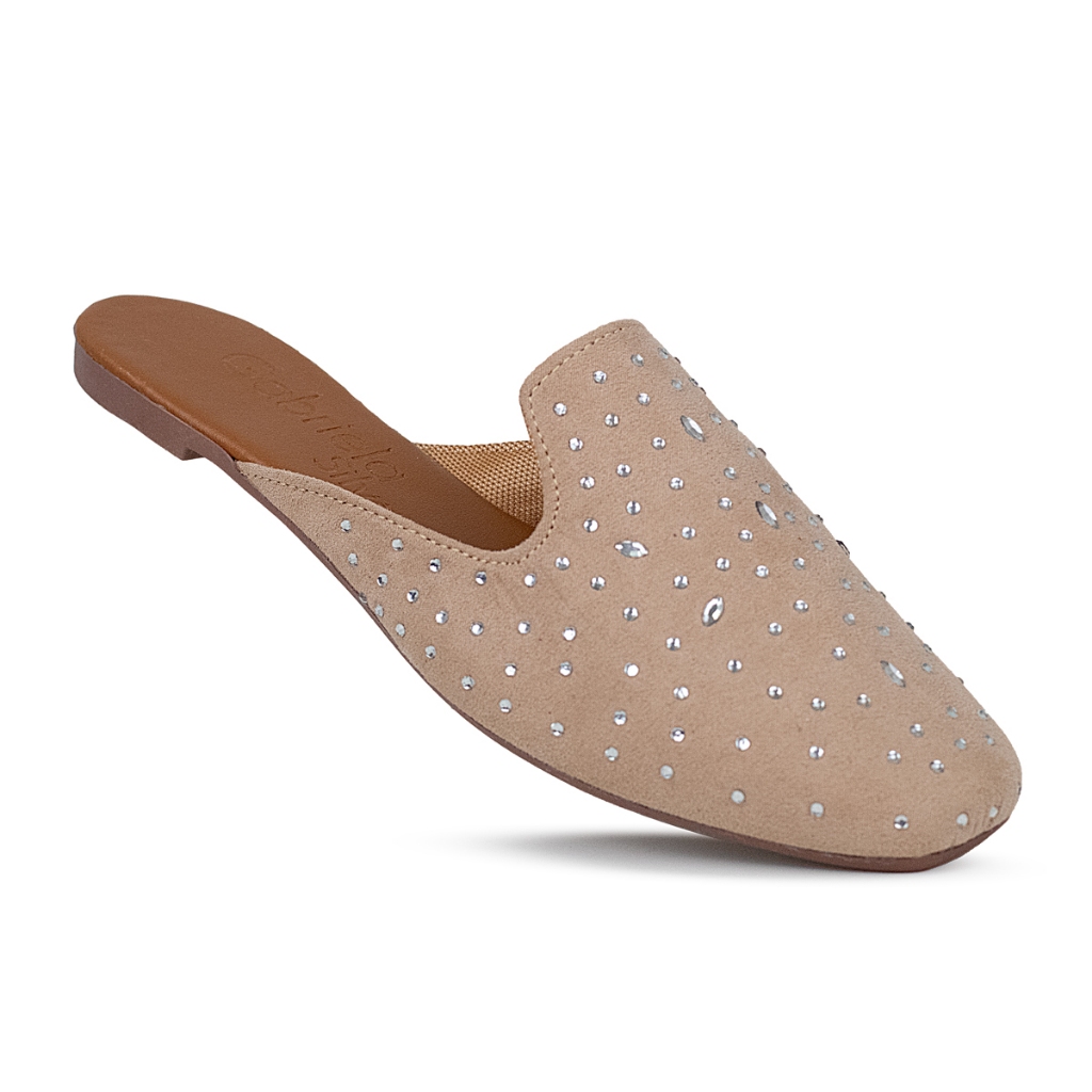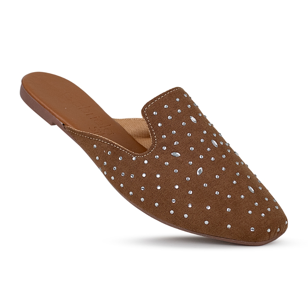 Mule Sapatilha Feminina Sandália Cavada Detalhes em Pedra Elegante Lançamento Tendência Moda Ref.53