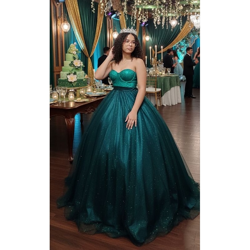 Vestido de festa debutante lindíssimo Esmeralda Preto Vermelho Marinho